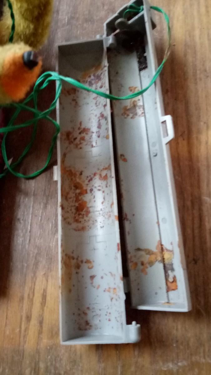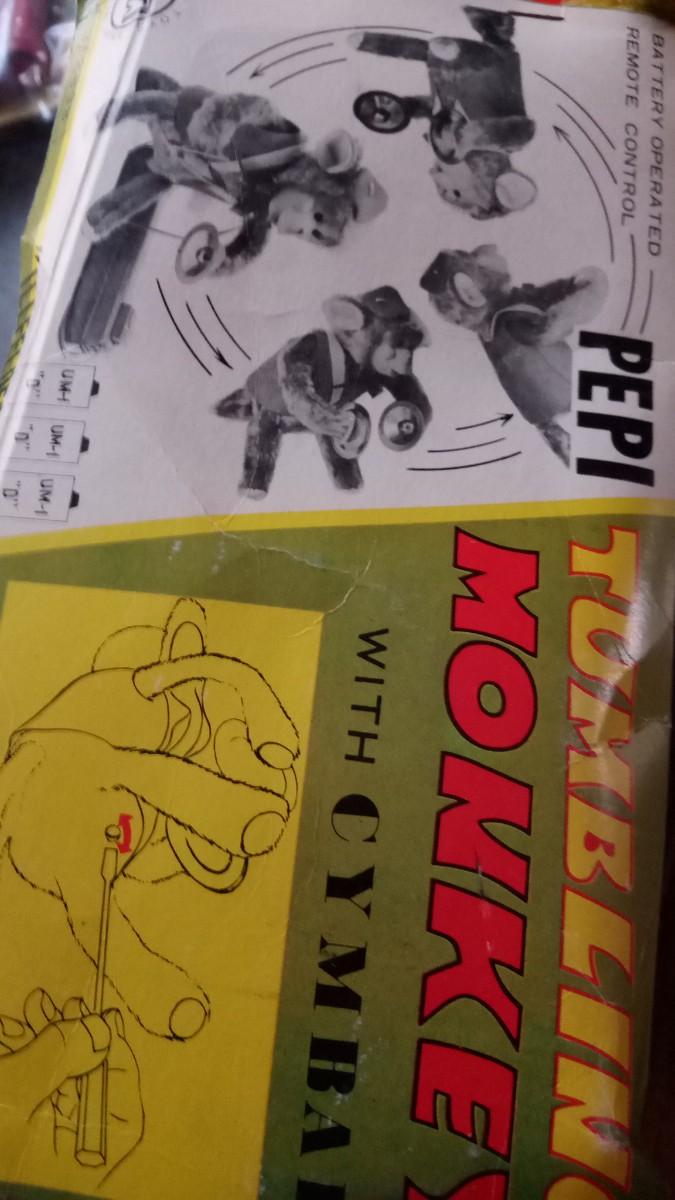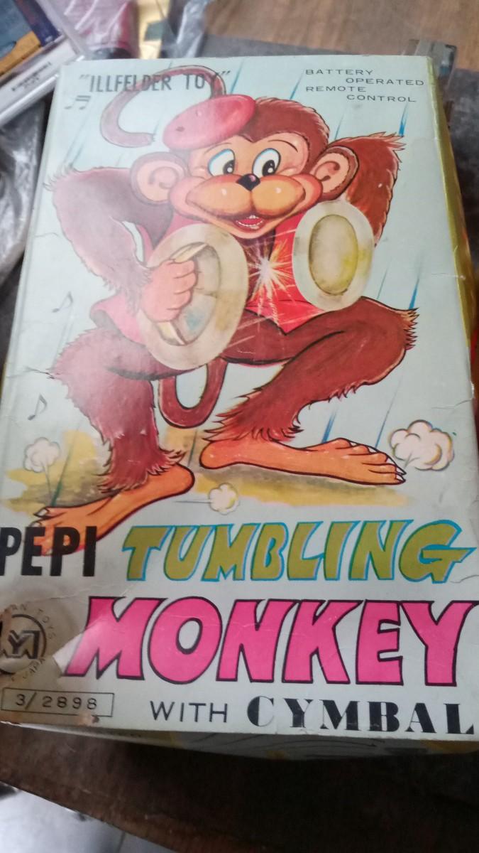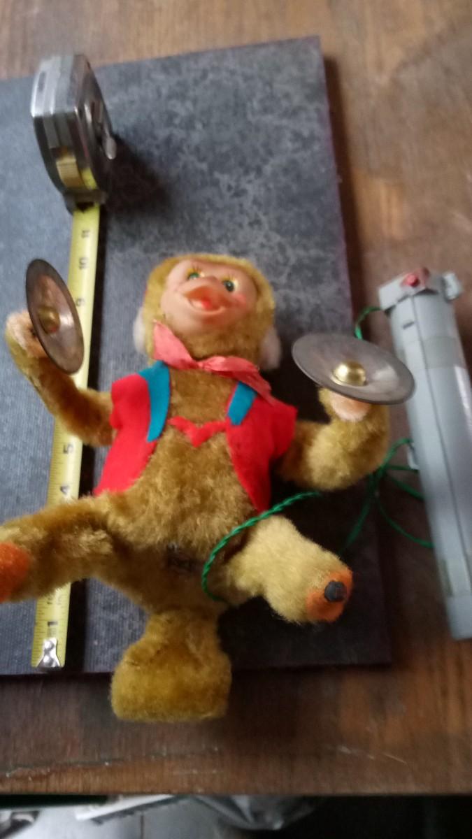 BATTERY CASE A LITTLE RUST BOX A LITTLE WORN TOY MONKEY IN GOOD SHAPE