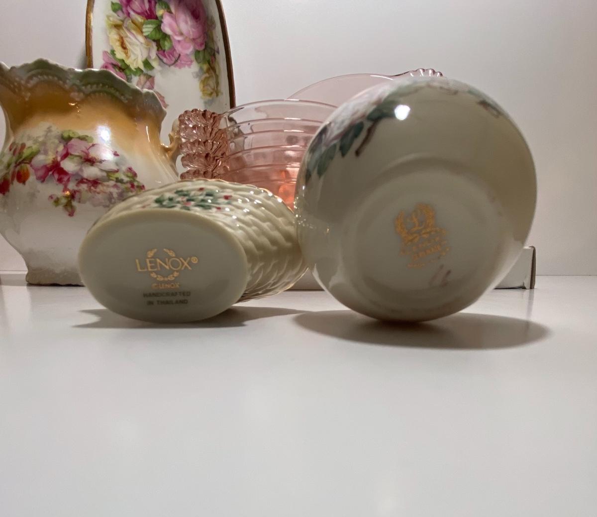 Oval floral dish has a chip, as seen in pics. Being sold AS-IS. Two smaller pieces are Lenox. Please see all pictures as they are the best representation of the items. The pictures show condition, measurements if taken, and what is included in the lot. Due to the large amount that we photograph and the time frame, we are not always able to take measurements. All items unless noted, are pre-owned and have been used. If you purchased furniture, you must bring help. We do not allow one person to carry large furniture out on their own. Bring help, tools and a truck for the safety of our client’s homes, and your personal safety. Company policy. Thank you.