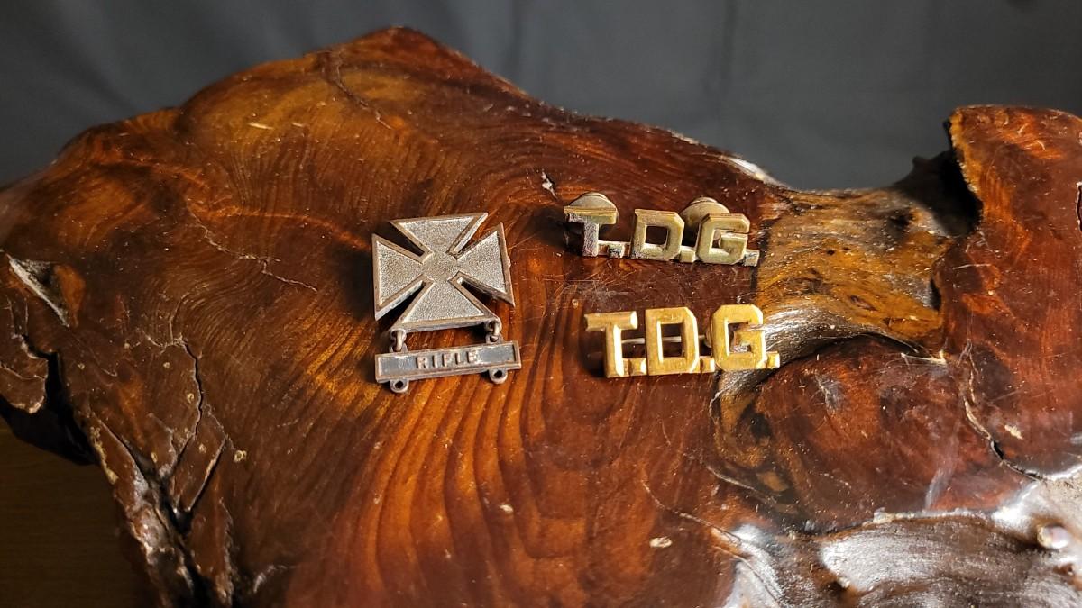 This lot features a Sterling Silver Infantry Rifle Pin + (2) Rare T.D.G. Pins. (Tactical Decision Games). All are in good condition for age.