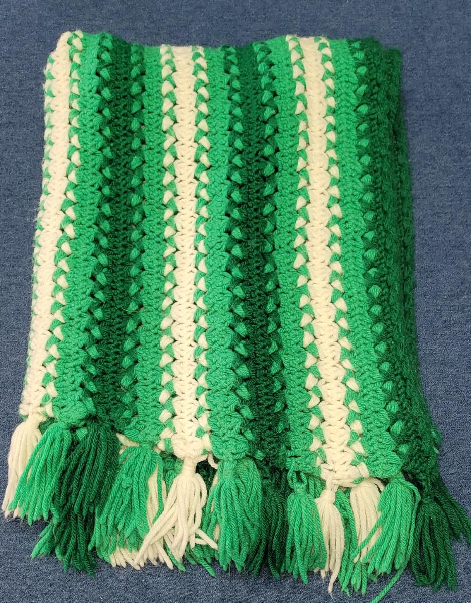 Lot 146: Green & White Crocheted Blanket