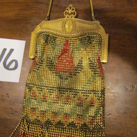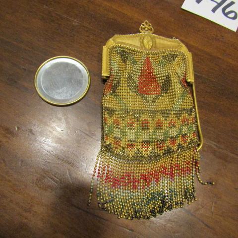 LOT 146  ANTIQUE METAL PURSE WITH MIRROR