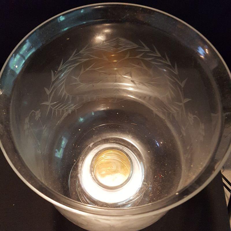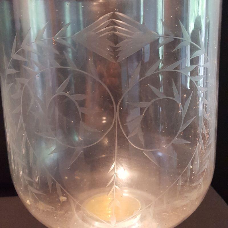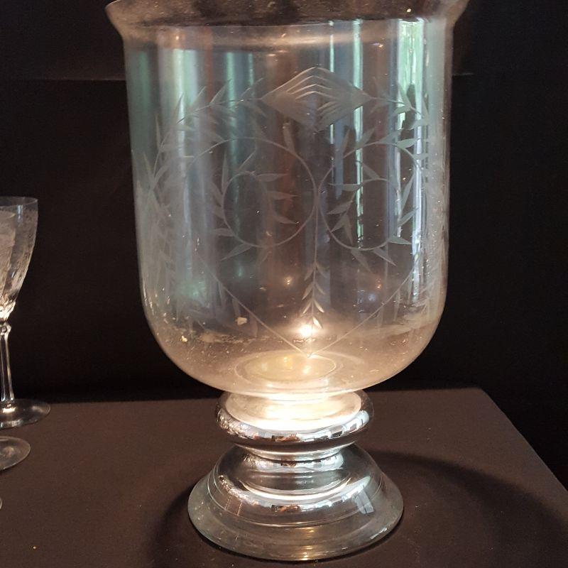 There is one lone glass, a bell, two serving plates and a large 14 inch urn.