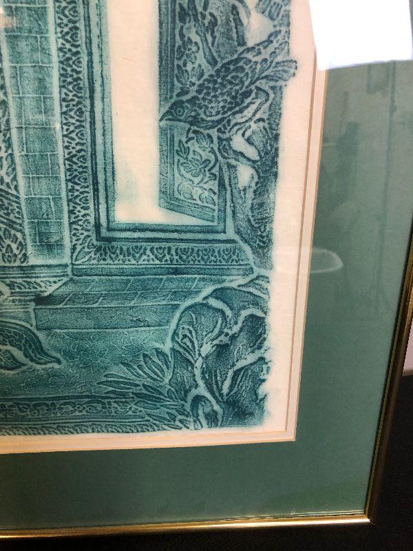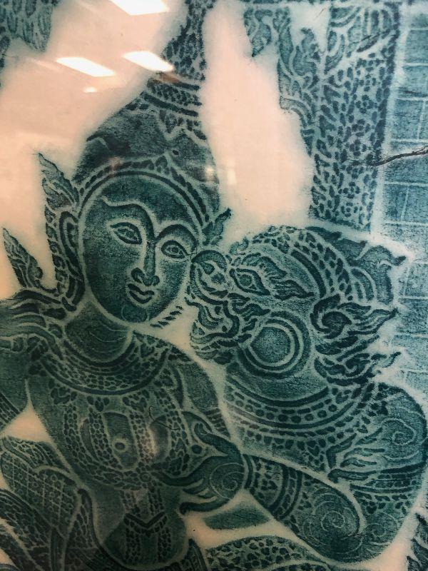 Lot # 146 Framed Temple Rubbing from Thailand GREEN