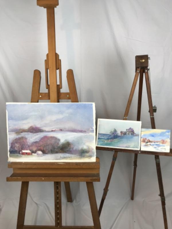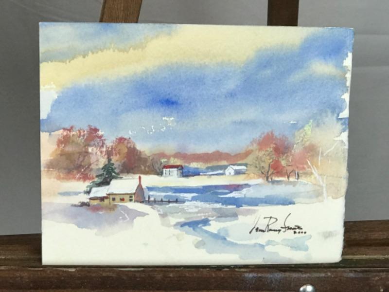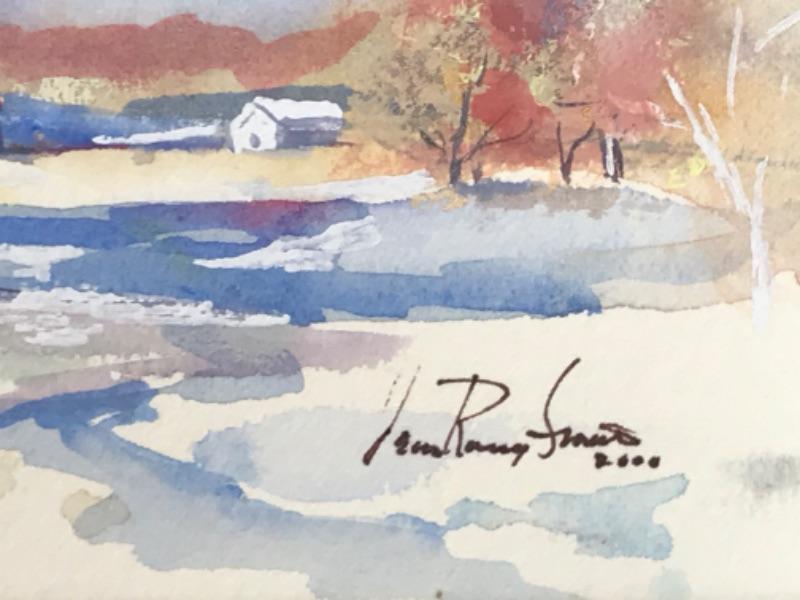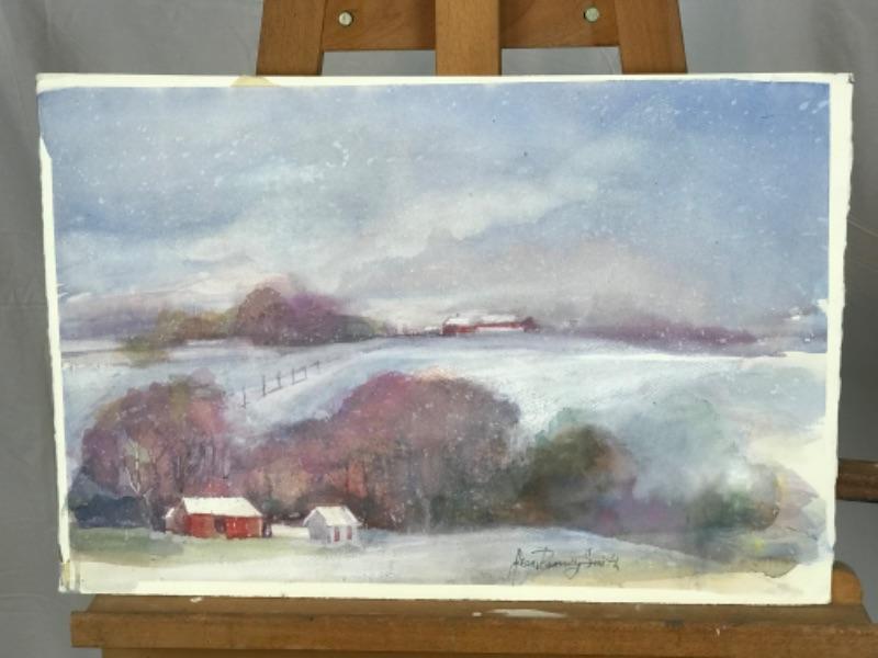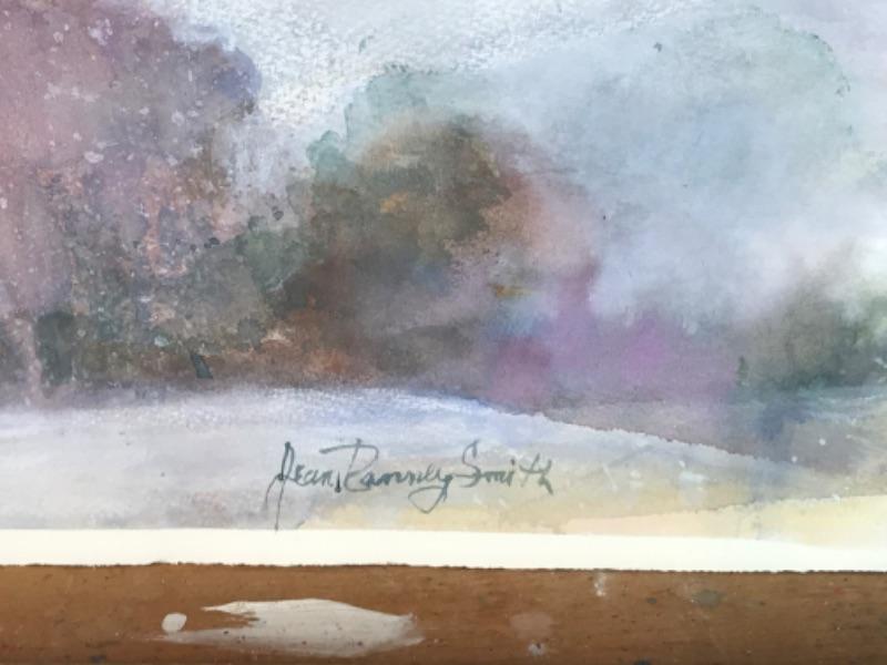 Three Jean Ranney Smith signed original watercolor paintings “Winter Farm Scenery” measures 22”x15”. “Home On The Water” measures 10-1/2”x7-1/2”. “Winter Scenery” measures 7”x5-1/2”