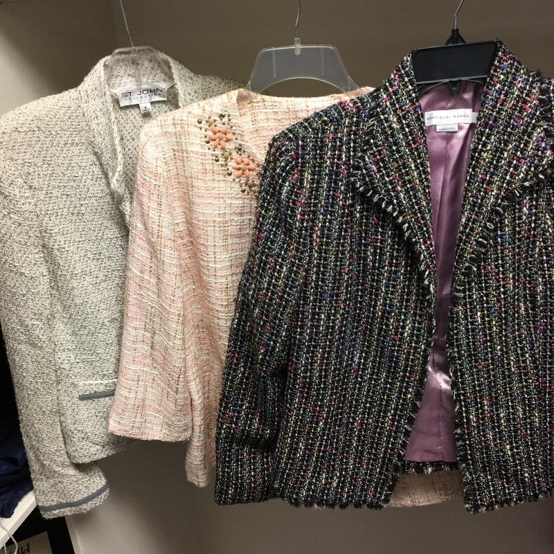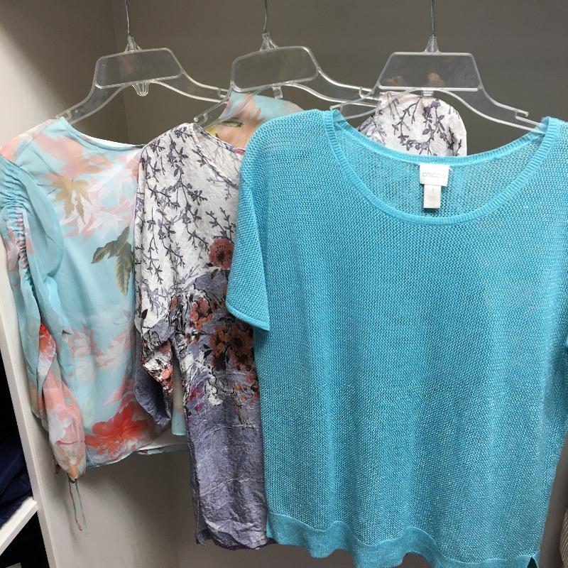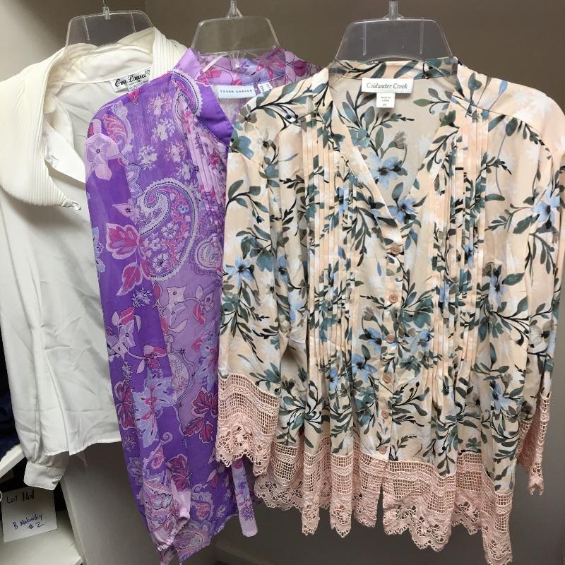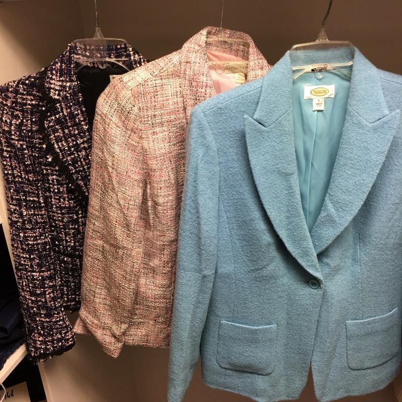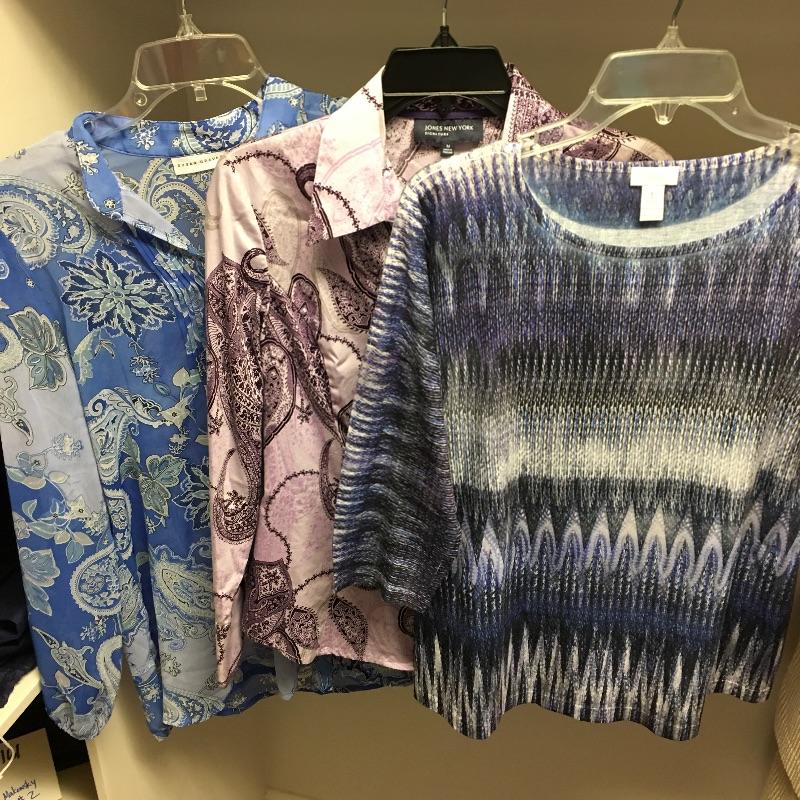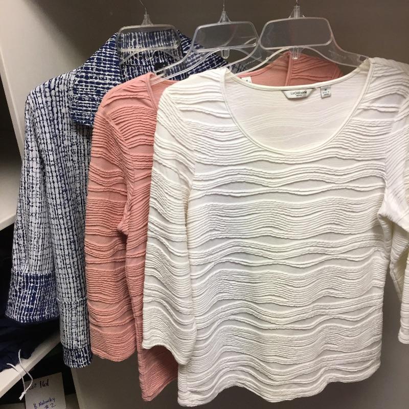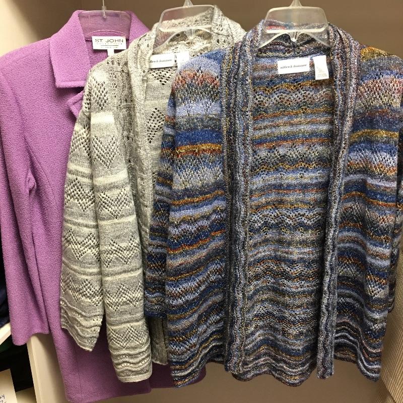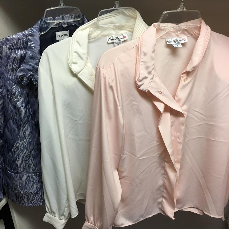Ladies tops includes jackets and tops by Talbots, Chico, Alfred Dunner, Anne Klein and more. Sizes are mostly 8-10.