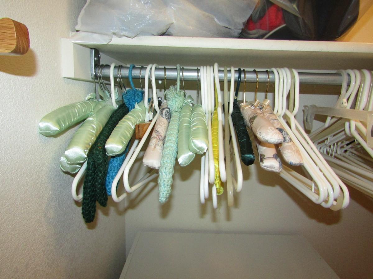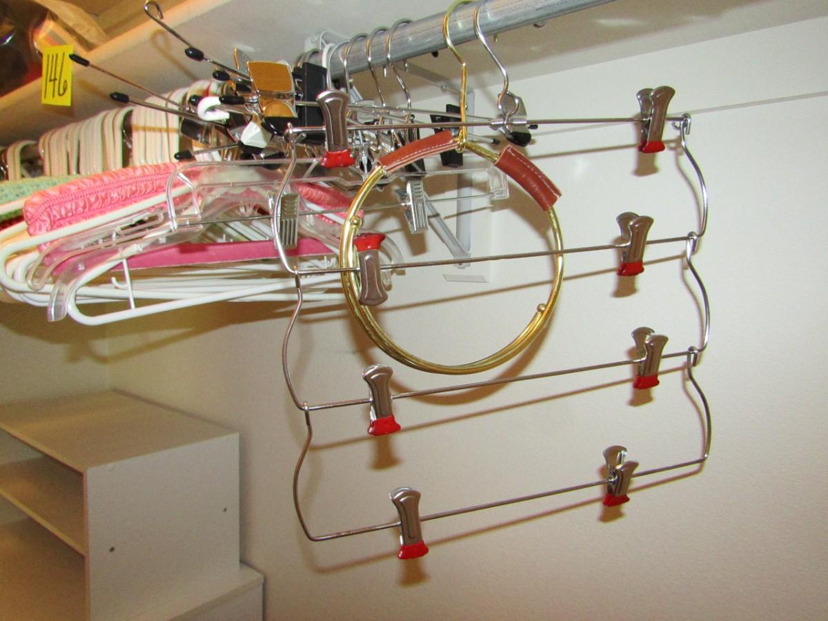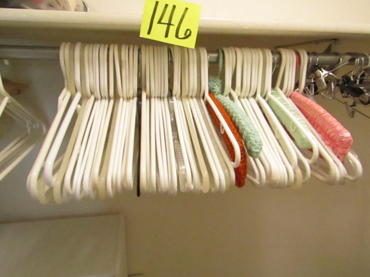 LOT 146 LARGE VARIETY OF CLOTHES HANGERS AND HAMPER