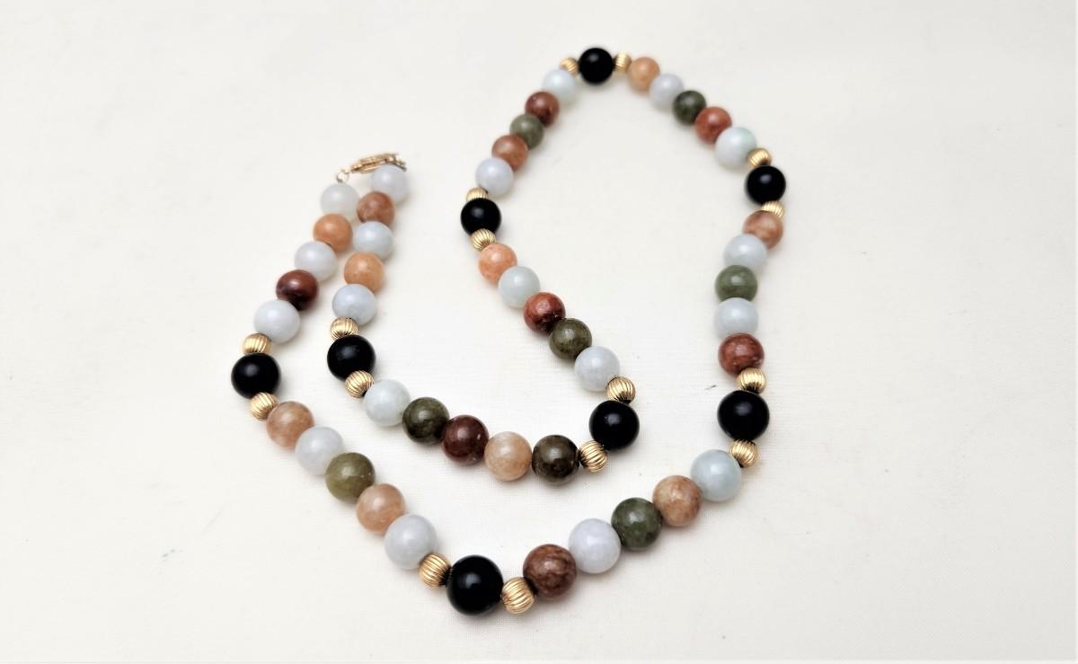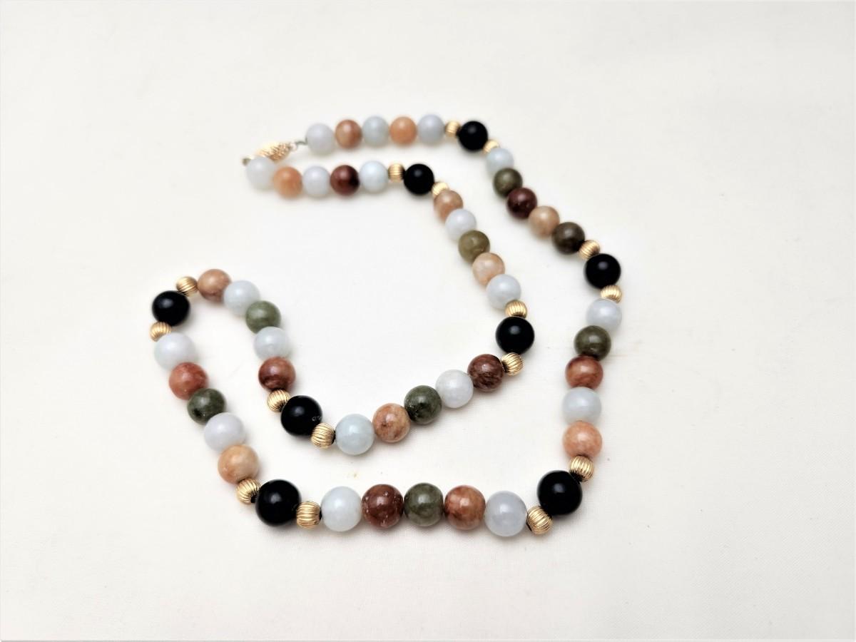 Lot #146 Natural Stone Bead Necklace with 14kt Gold Clasp and Spacers