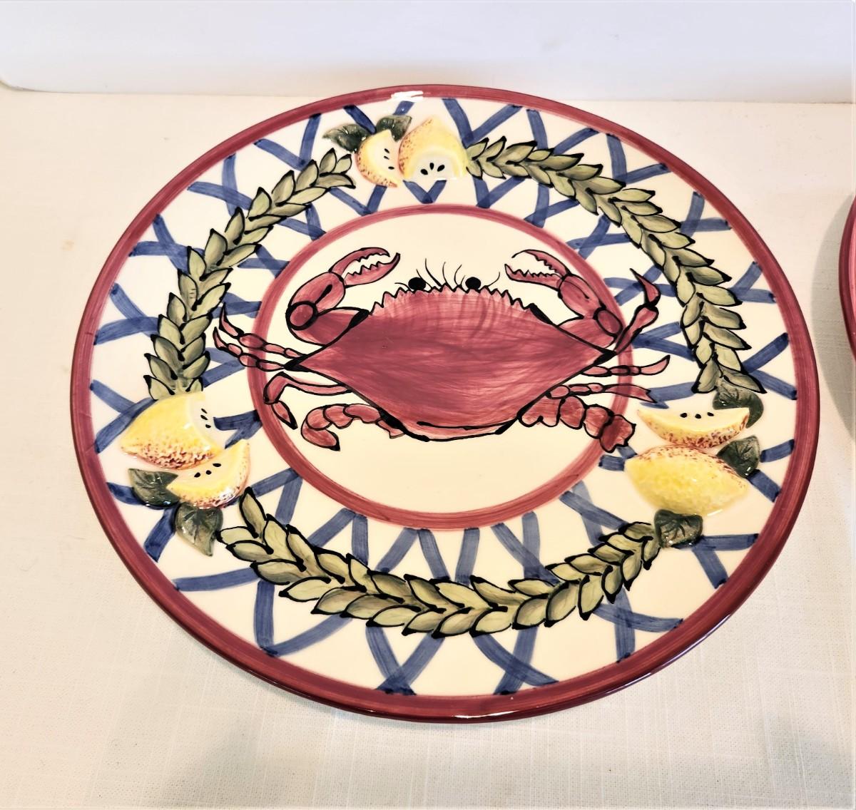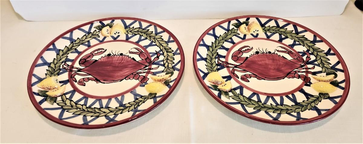 Nice pair of "Becca" crab-themed dinner plates - each 11" across - with raised lemons. Good condition.
