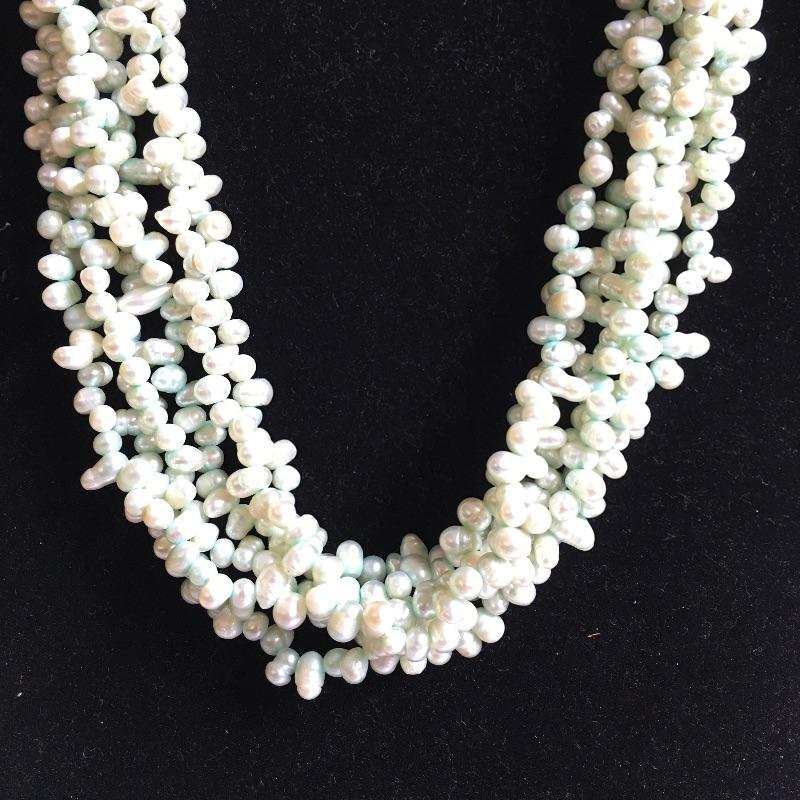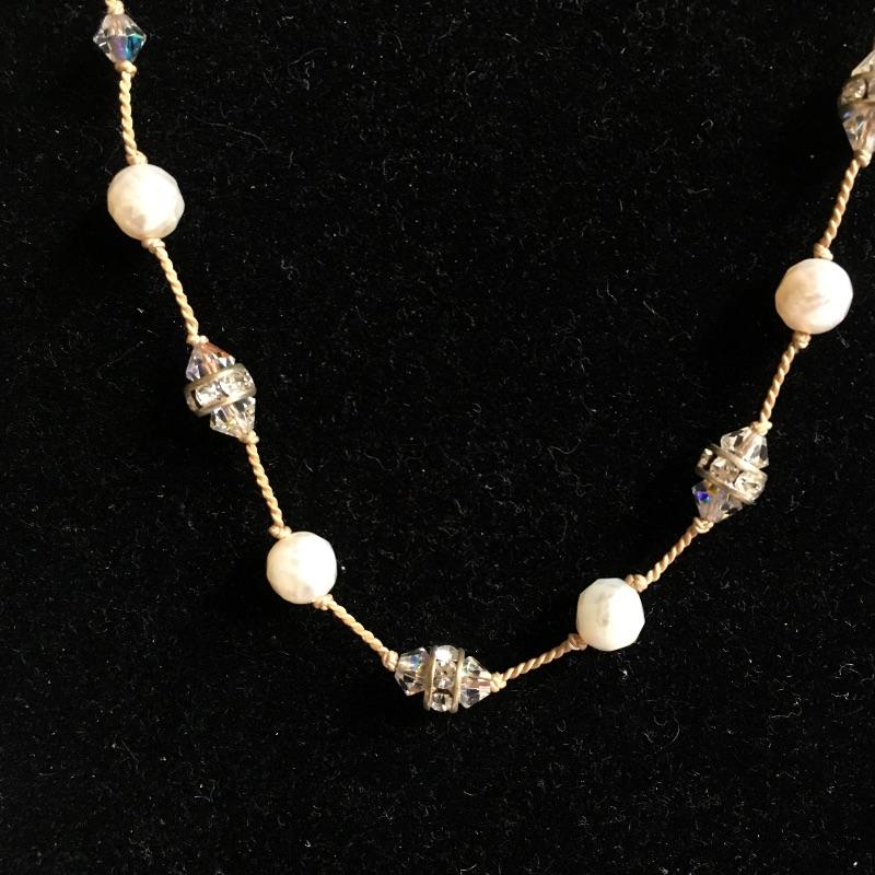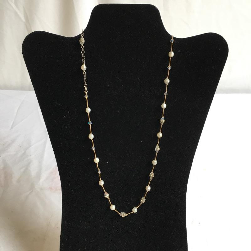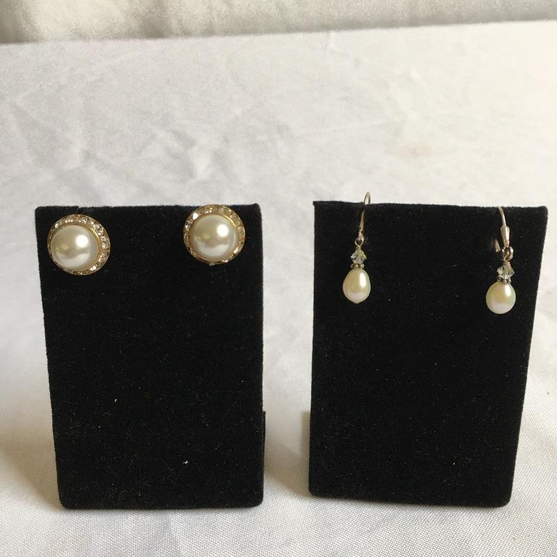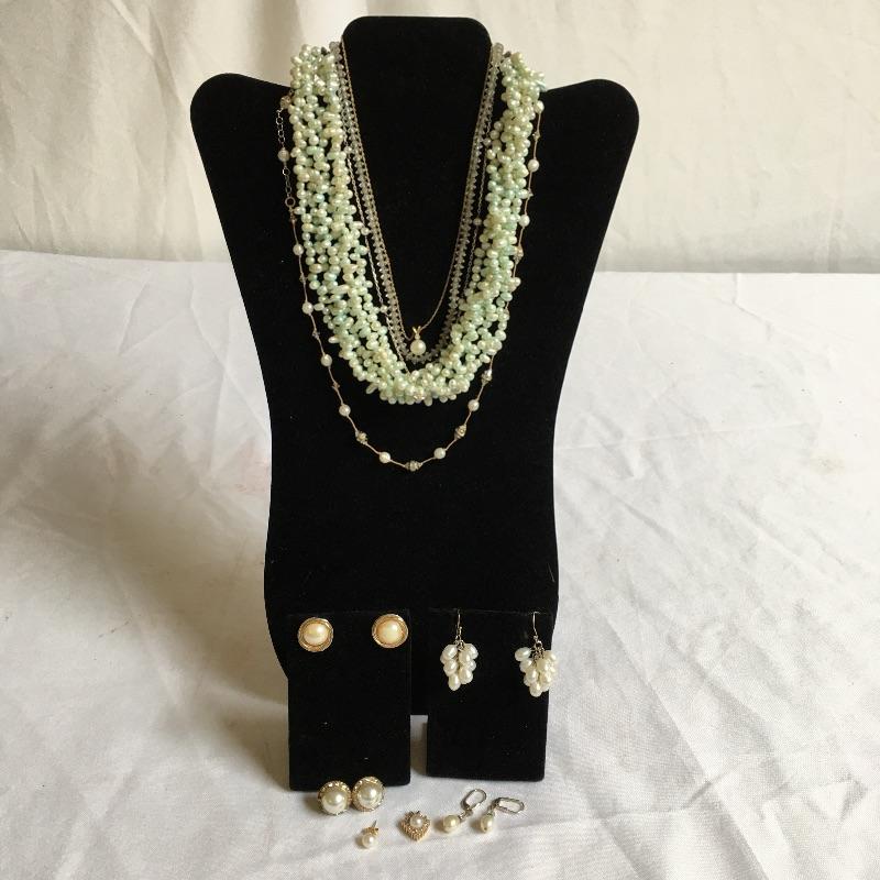 Pearls and crystals. Lot includes multi strand pearl like necklace with clas marked 925, necklace marked 14K P, crystal necklace, post and hook earrings, necklace marked 925 with what appears to be pearls and more.