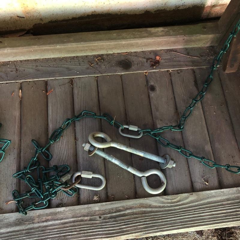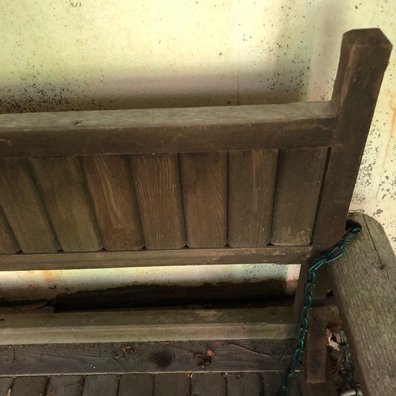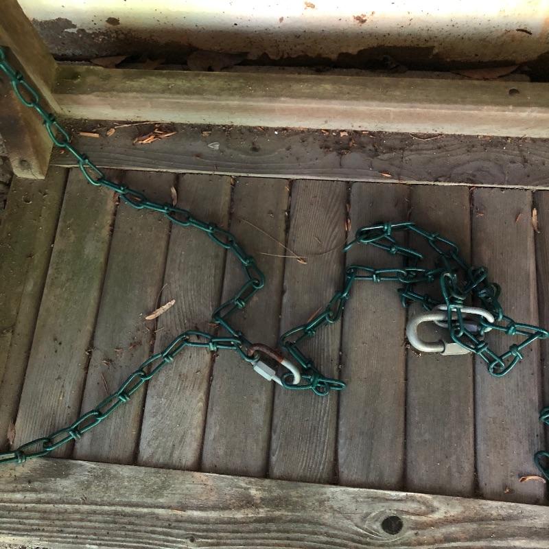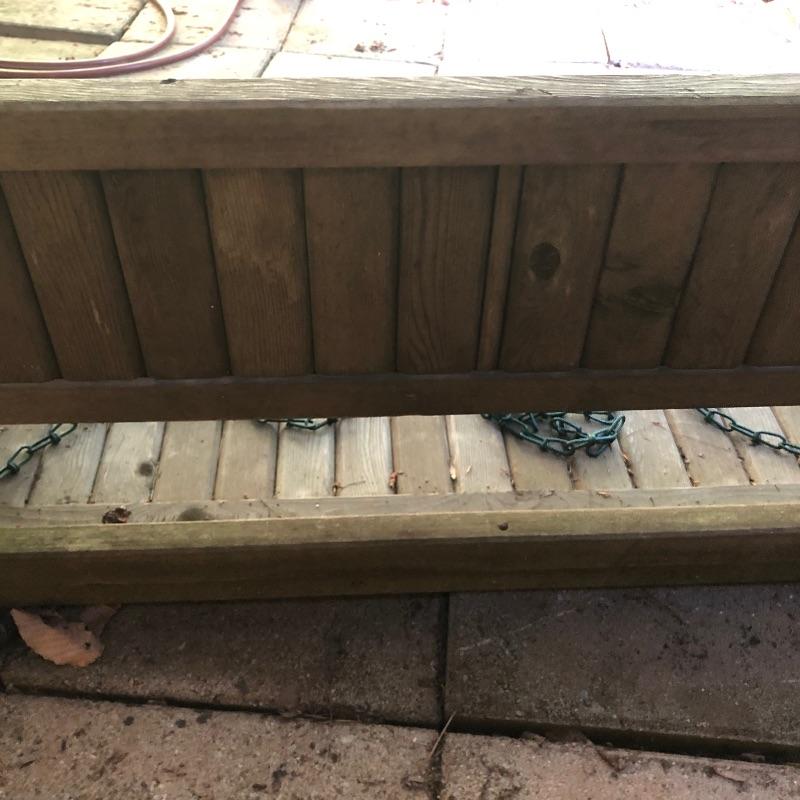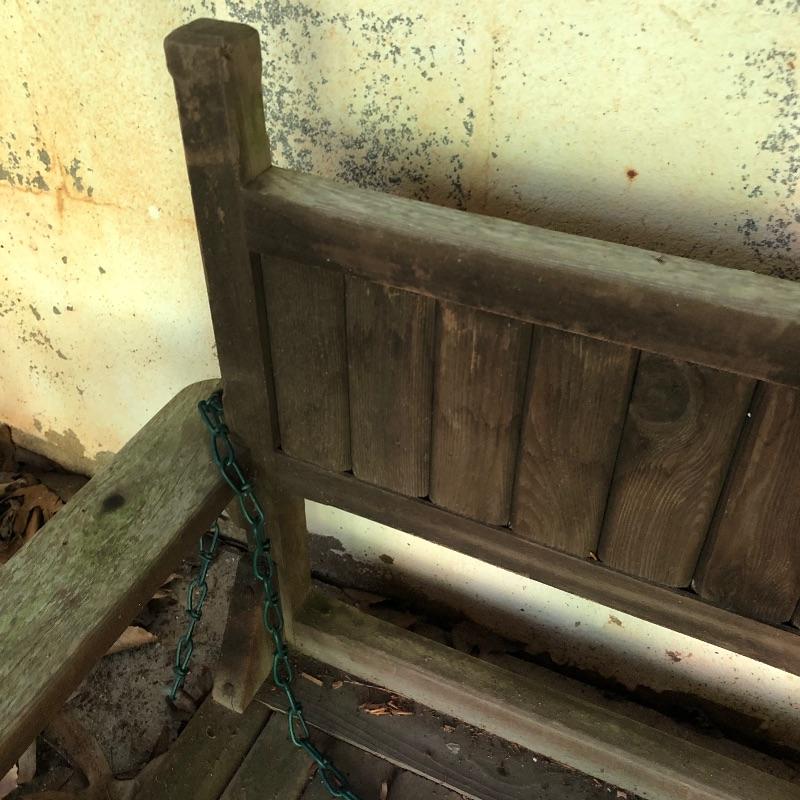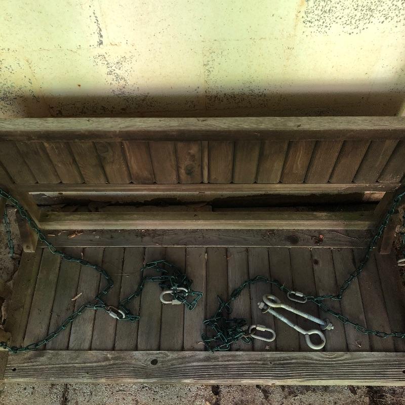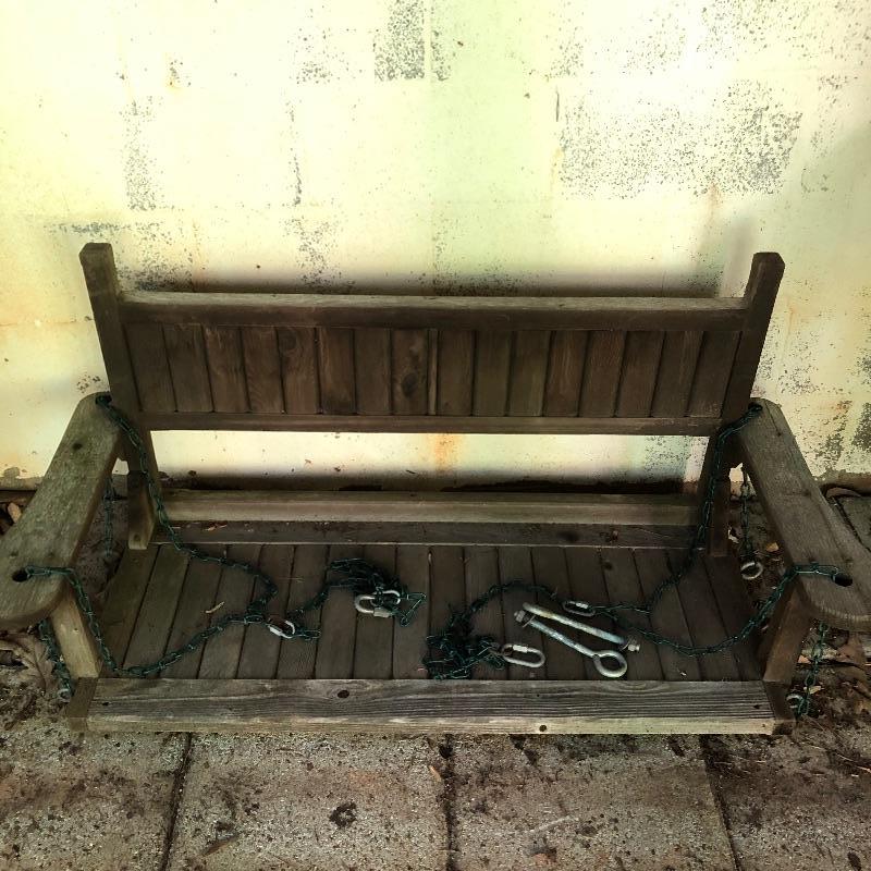 This lot is a wooden swing. It comes with chains so that it can be hung. This swing does show signs of use, but it has a lot of life left in it. Swing measures 52.5”W x 21”D x 24”H. Local pickup only.