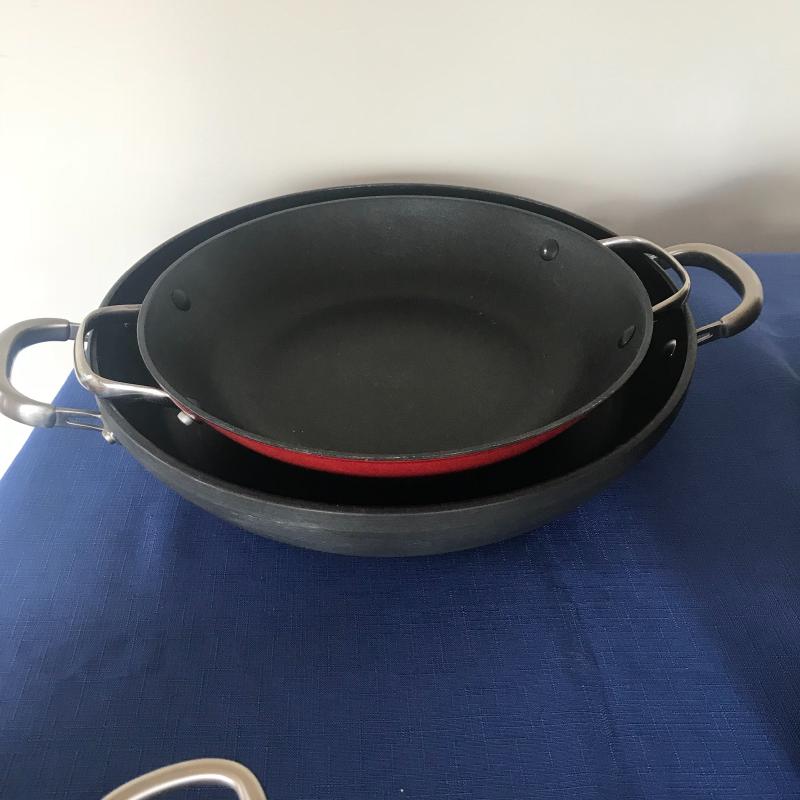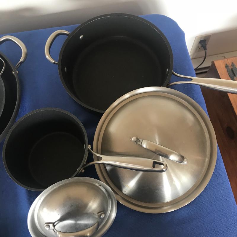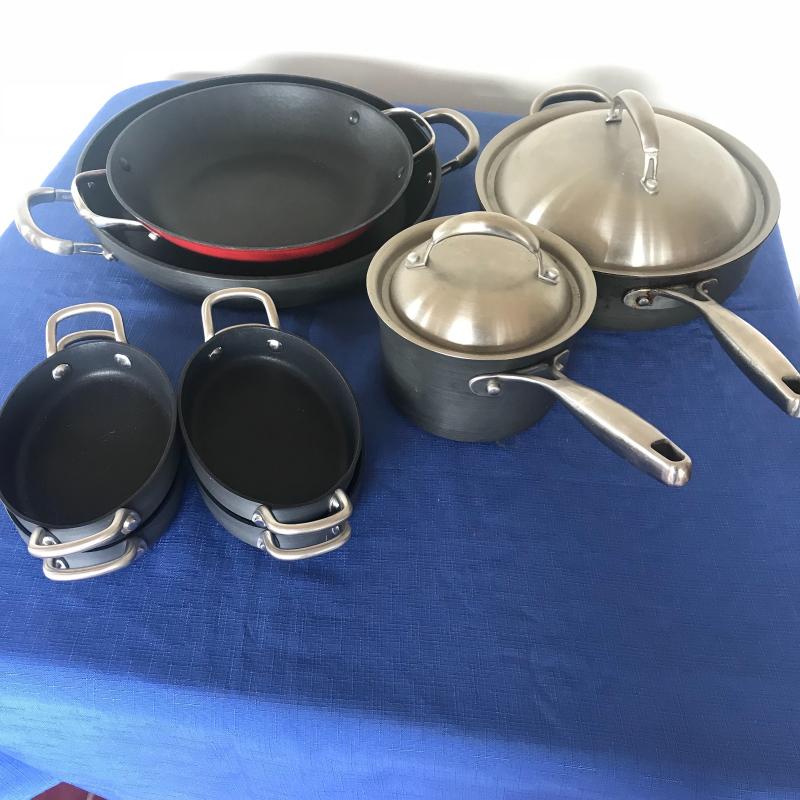 4 Small nonstick cook pans, 2 two lidded saucepans and two wok like pans all by Technique. Local pick up only.