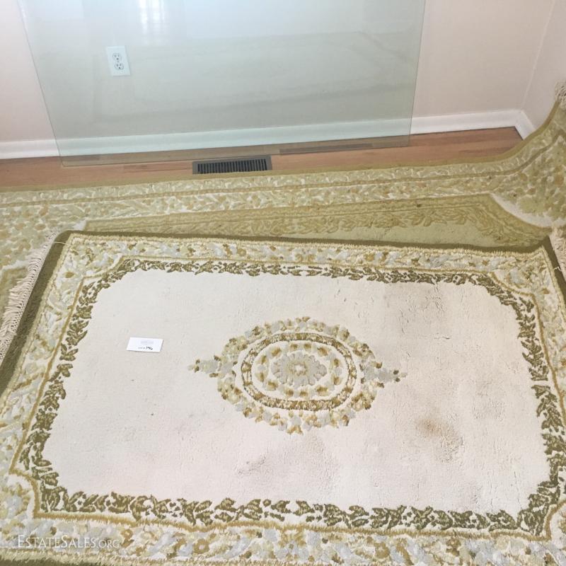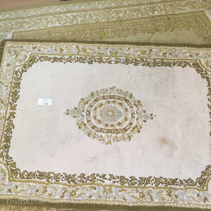 Both light Ivory with Gold and greenish detail, all pure new wool pile.