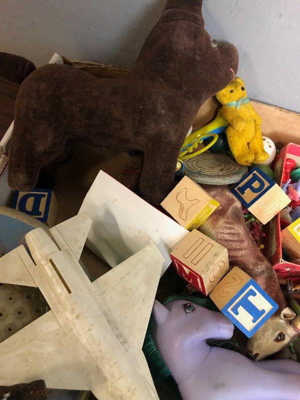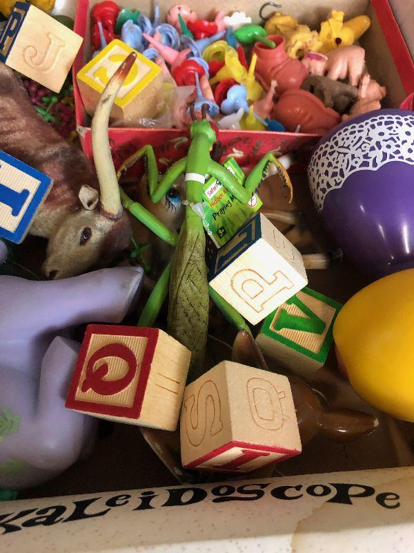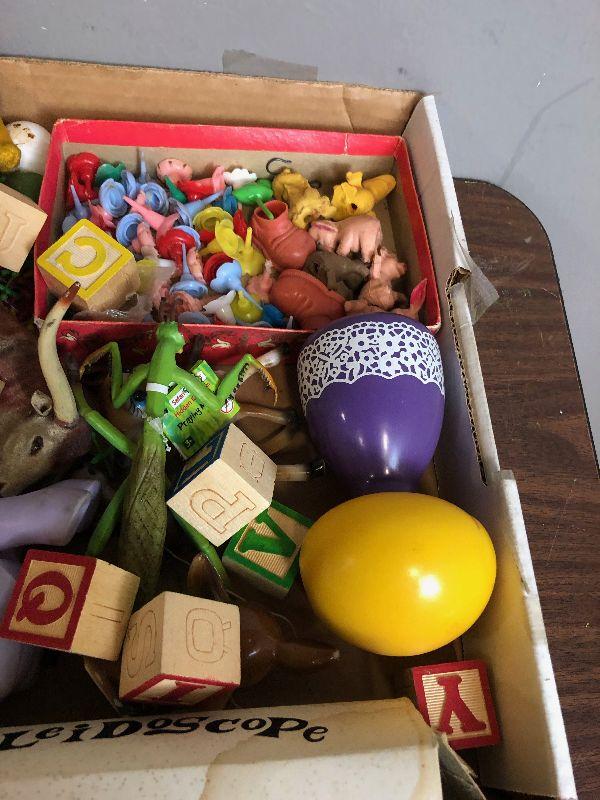 Lot # 146 Vintage lot of Toys, cake toppers, blocks