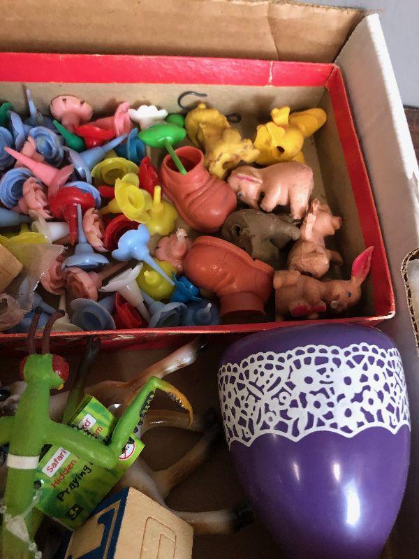 Lot # 146  Vintage lot of Toys, cake toppers, blocks