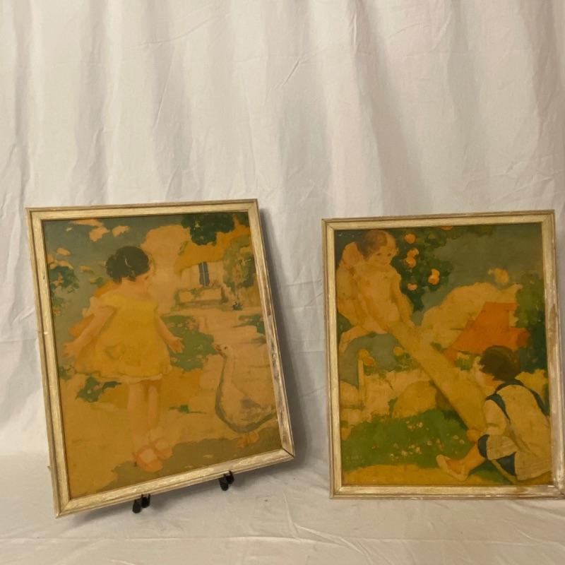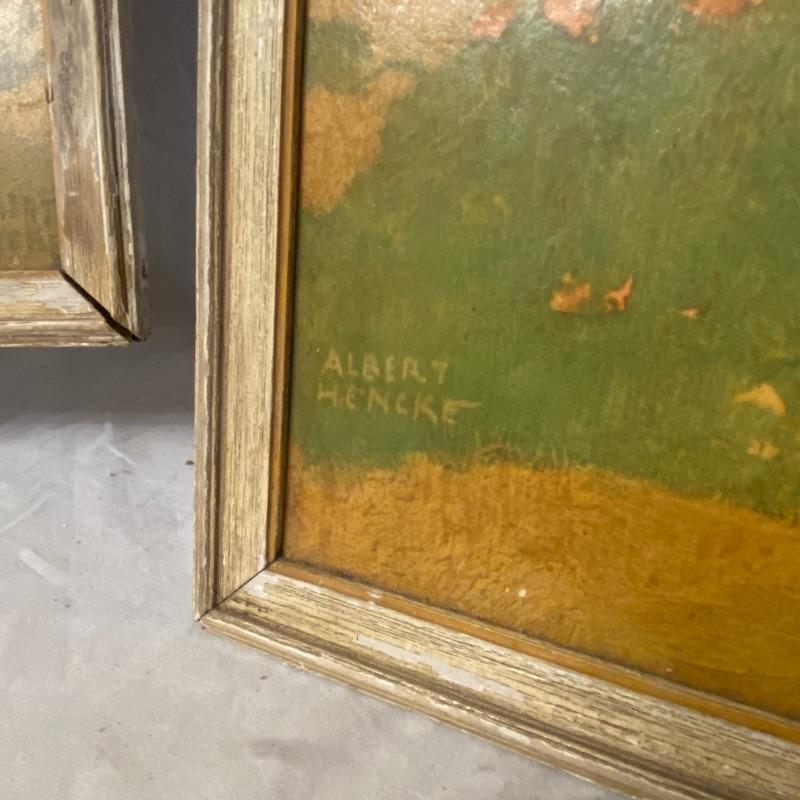 Pair of Albert Hencke art. This lot includes art printed on pressed wood board. Both framed in light wood. Slight aging on these pieces see photos. Measurements are 17.5"x22", Shipping available.