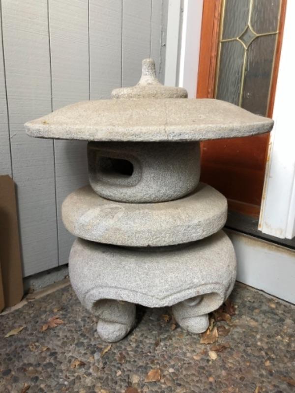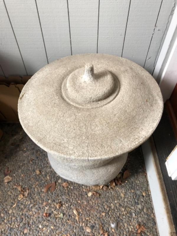 Lot 146U. Round cement garden pagoda, 20” tall and 18” in diameter--$85