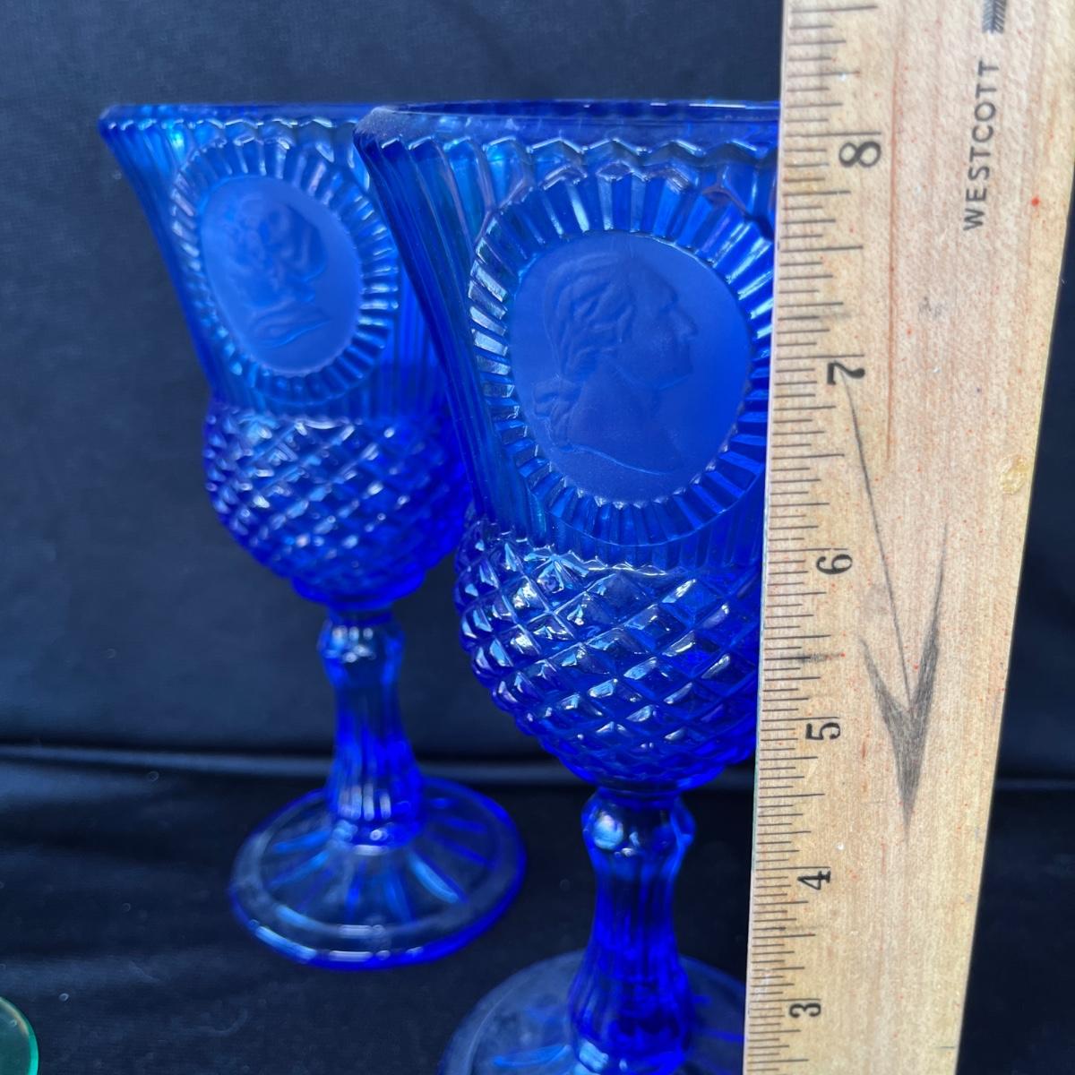 Avon George & Martha. The others are depression Uranium Glass. Some gold wear, no damage.