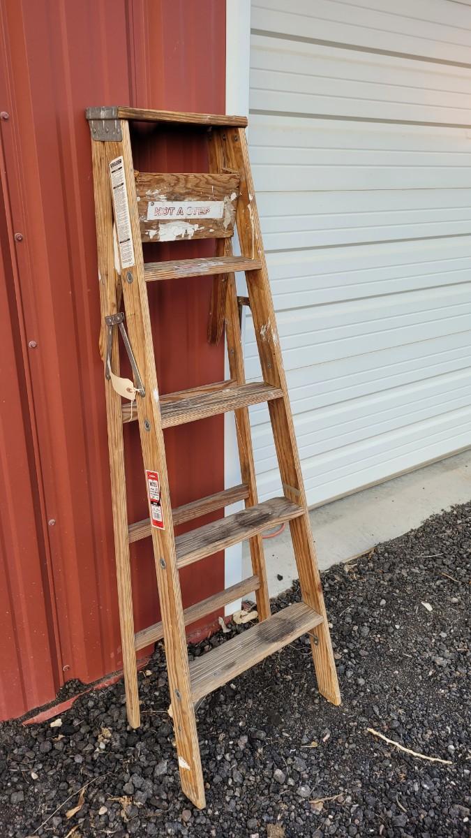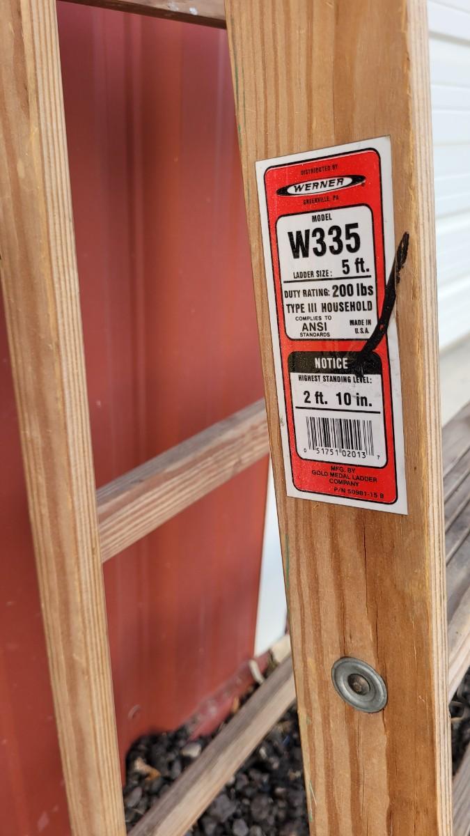 Lot 147: Vintage WERNER W355 5 Foot 200 lb. Wood Stepladder