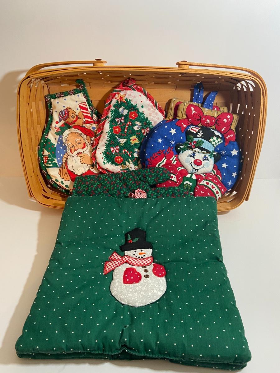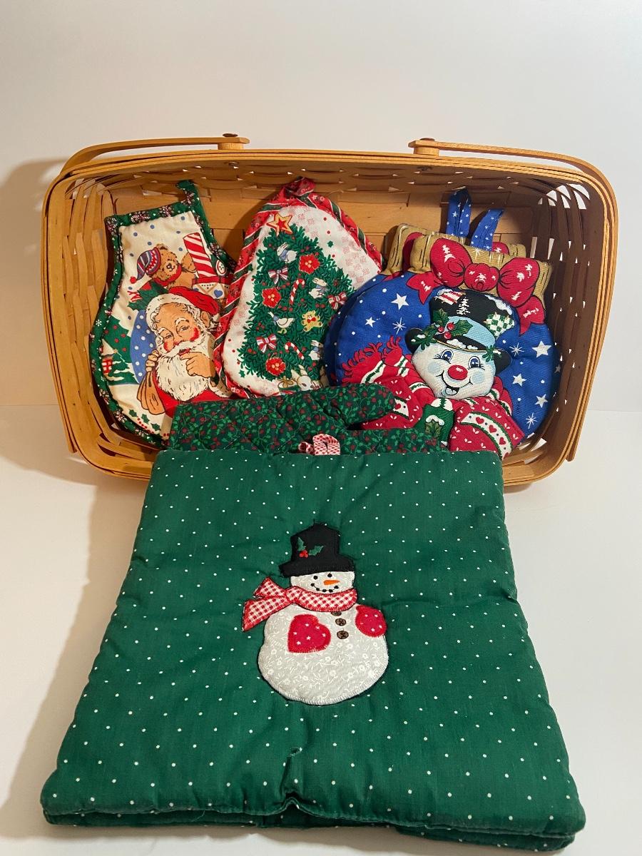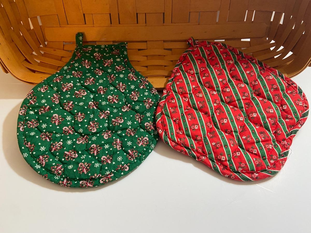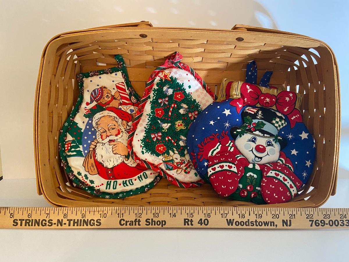 Lot 147: Longaberger Basket w/Christmas Pot Holders