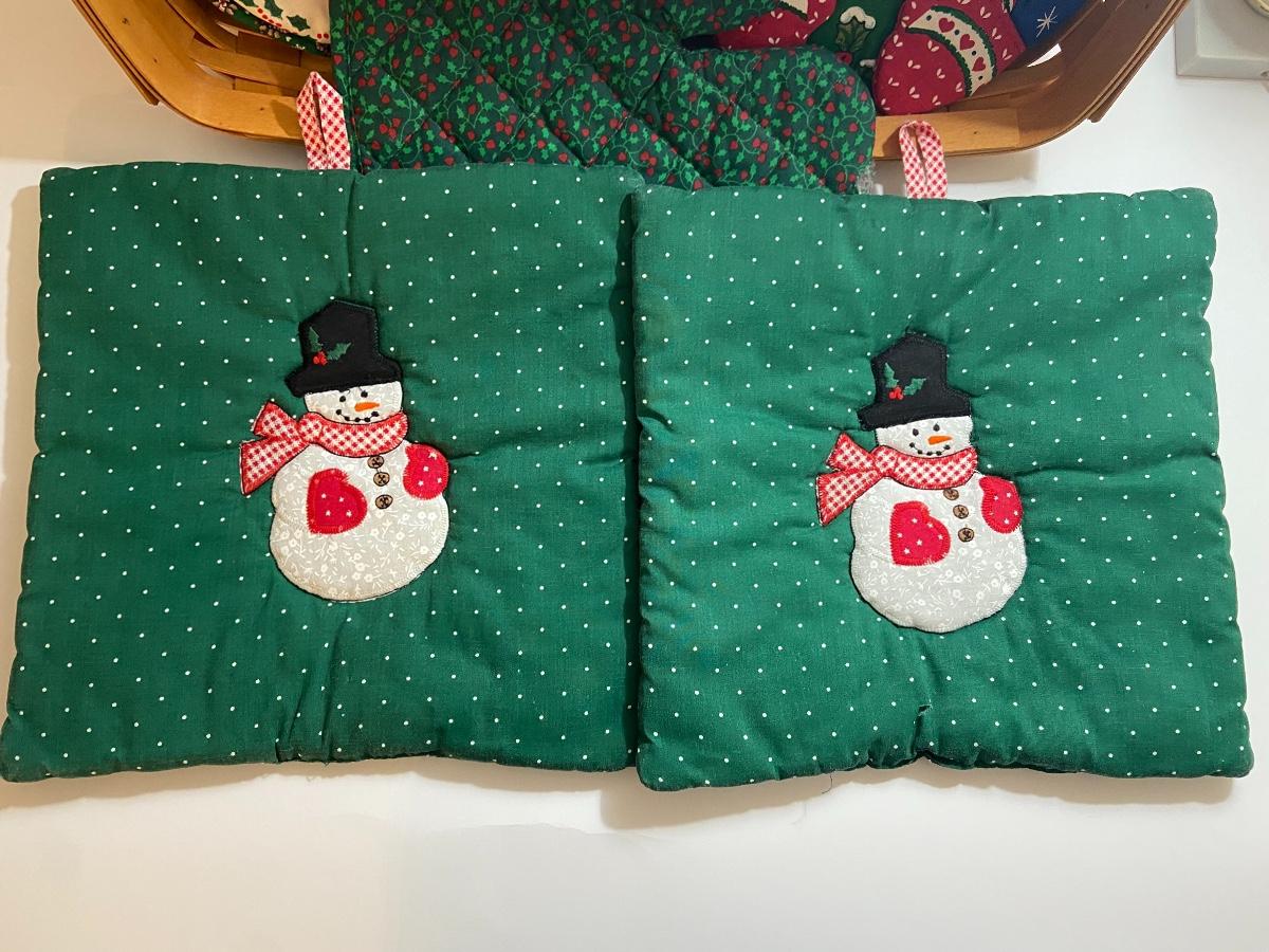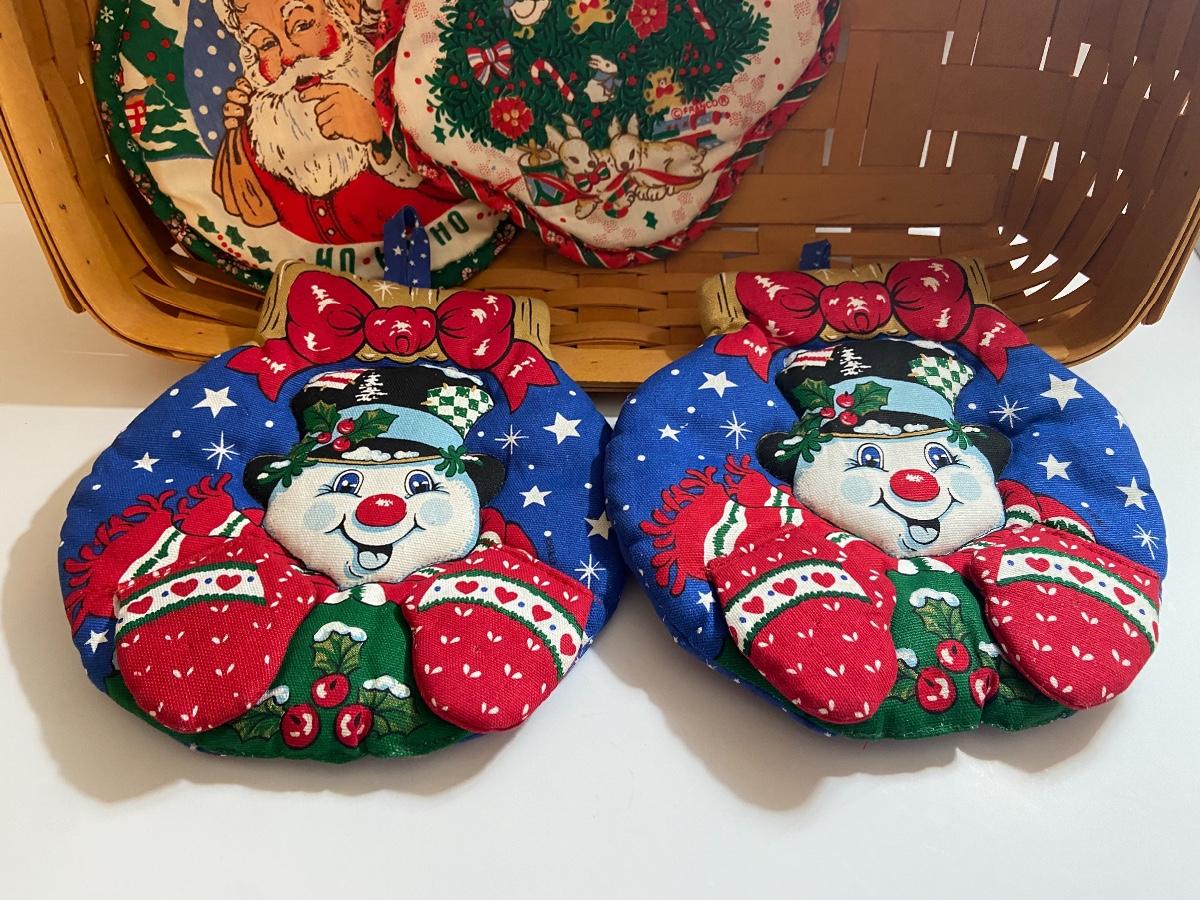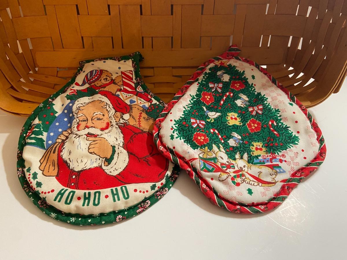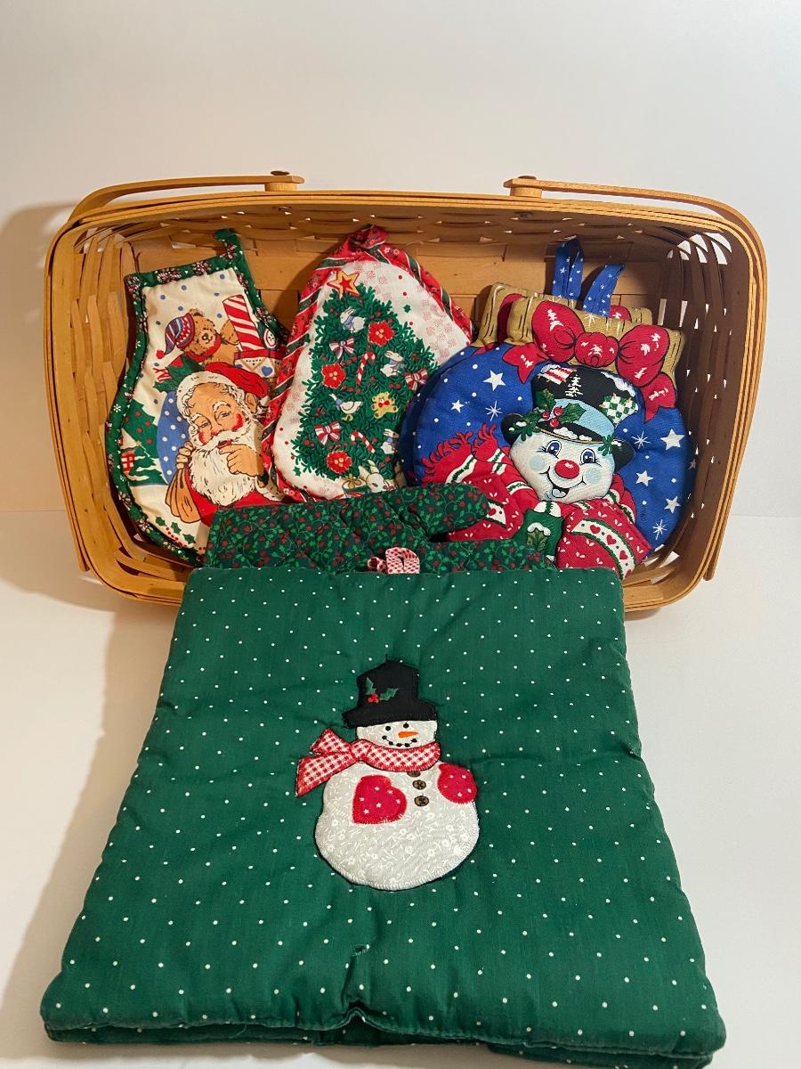 Lot 147: Longaberger Basket w/Christmas Pot Holders