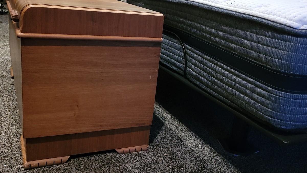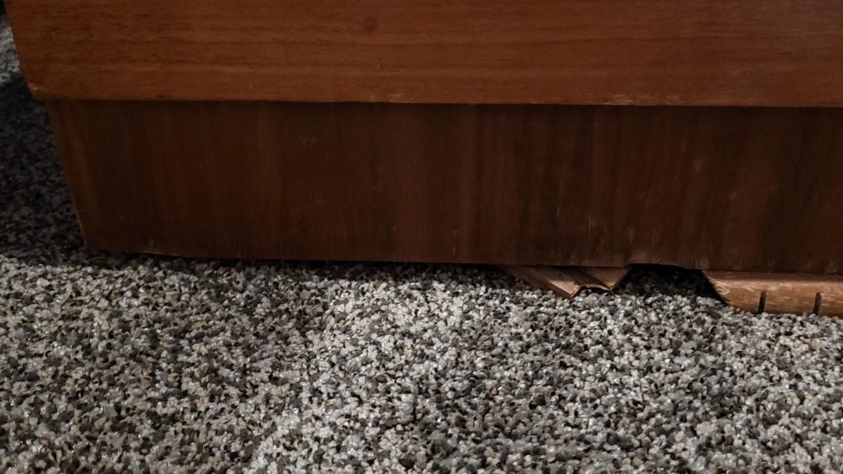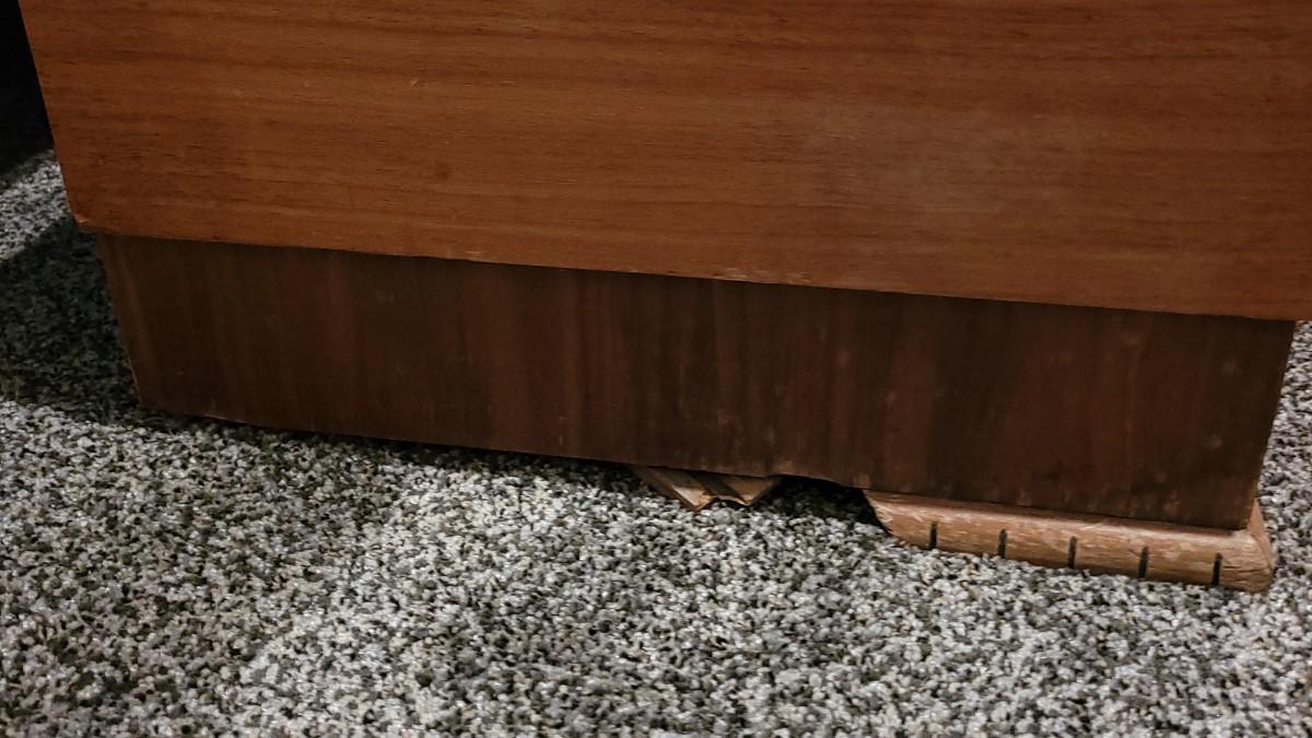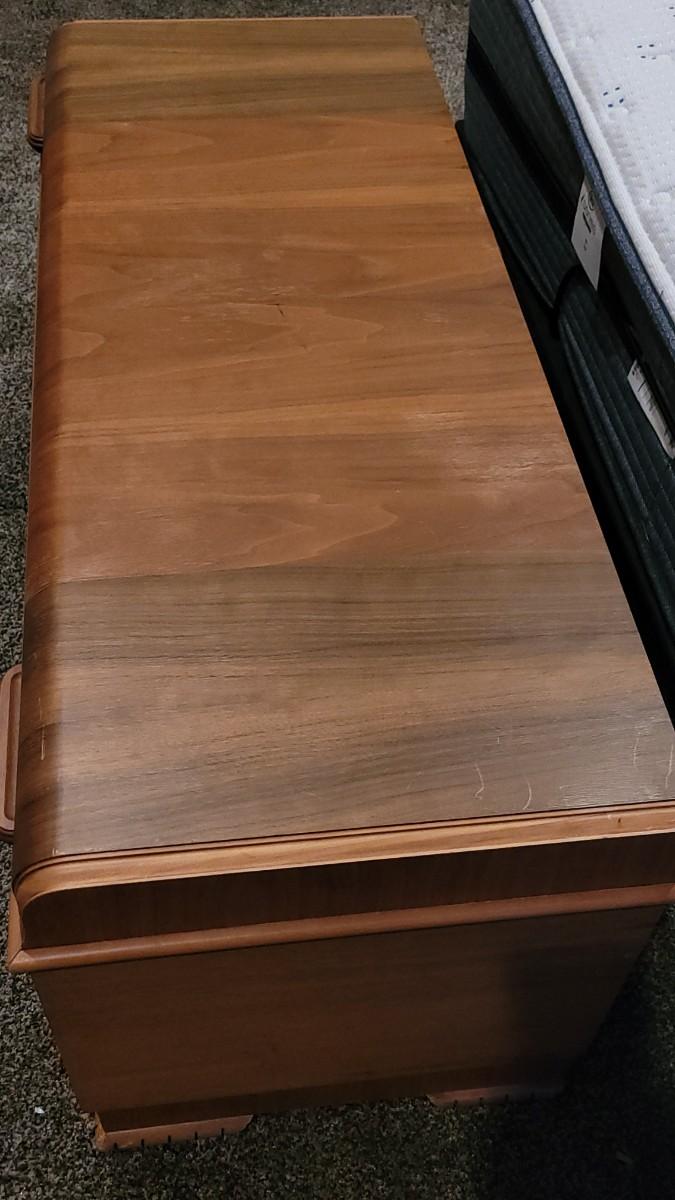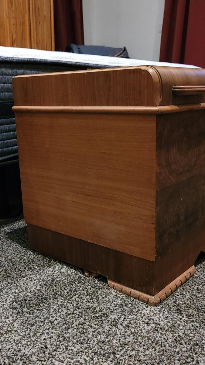 Interior is in great condition. The back left "foot" needs a repair. Overall nice condition for a 70 year old chest!
