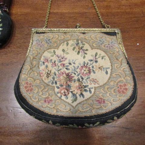 THE PURSE ON THE LEFT IS VINTAGE TAPESTRY IN VERY GOOD CONDITION