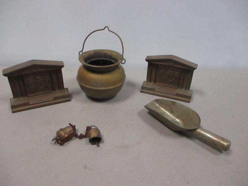 Lot 147 - Bookends - Bells - Scoop & Small Spittoon
