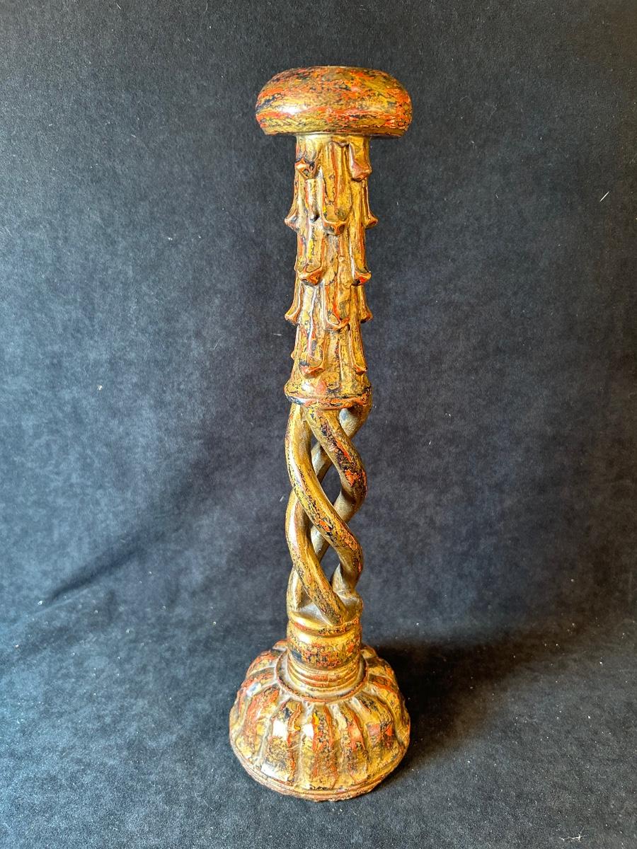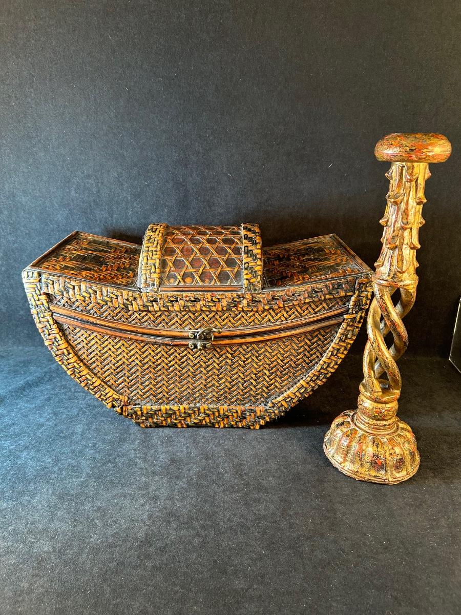 Wooden swirl candleholder is 15" and unique shaped box with lid is 16"L x 8 1/4"W x 5 1/2"D