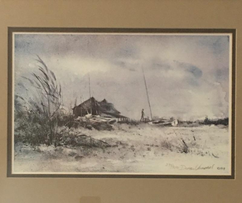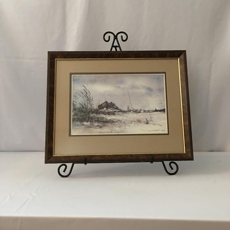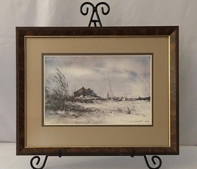 Donald Voorhees signed, numbered, framed and matted print. A beautiful depiction of the beach and boats on the sand.