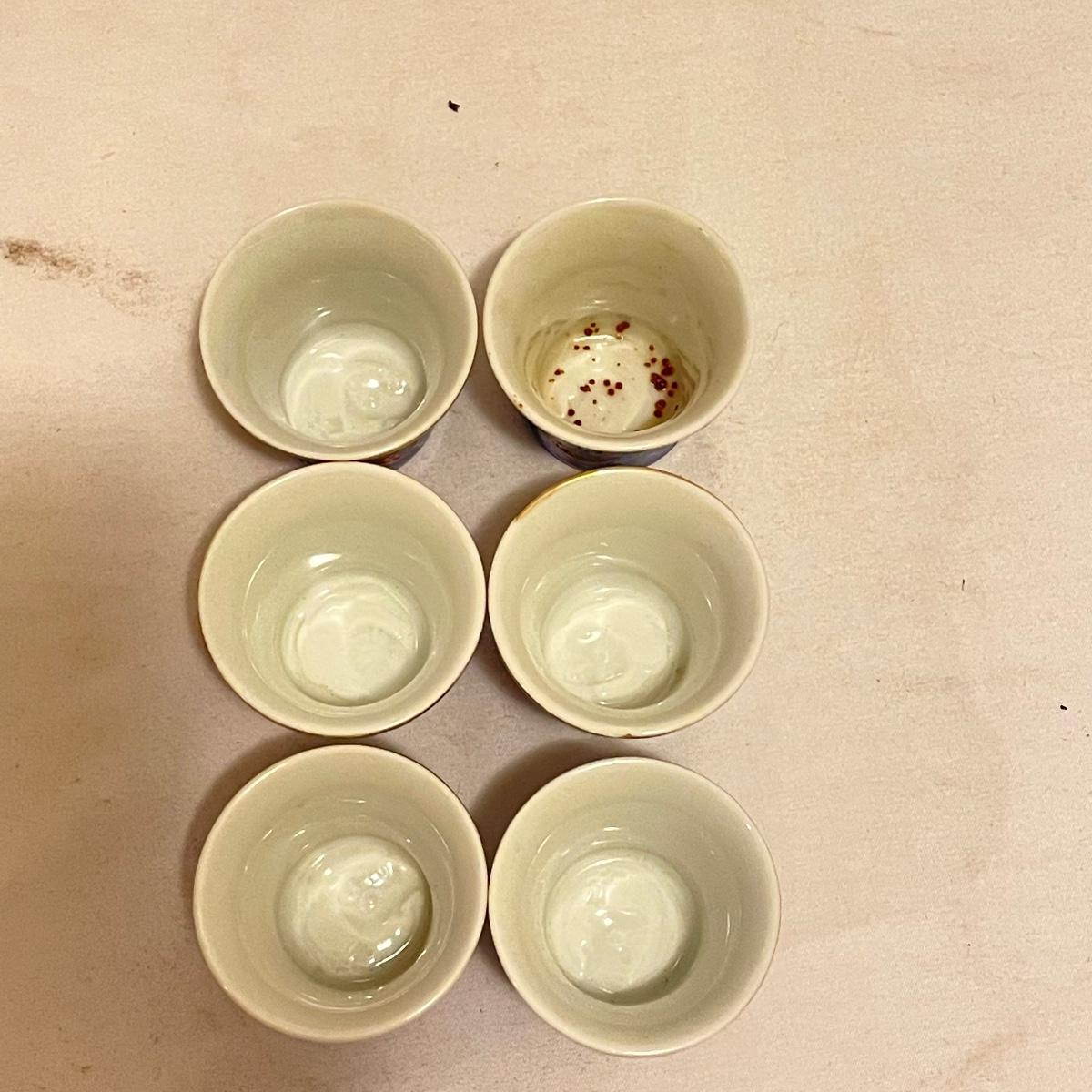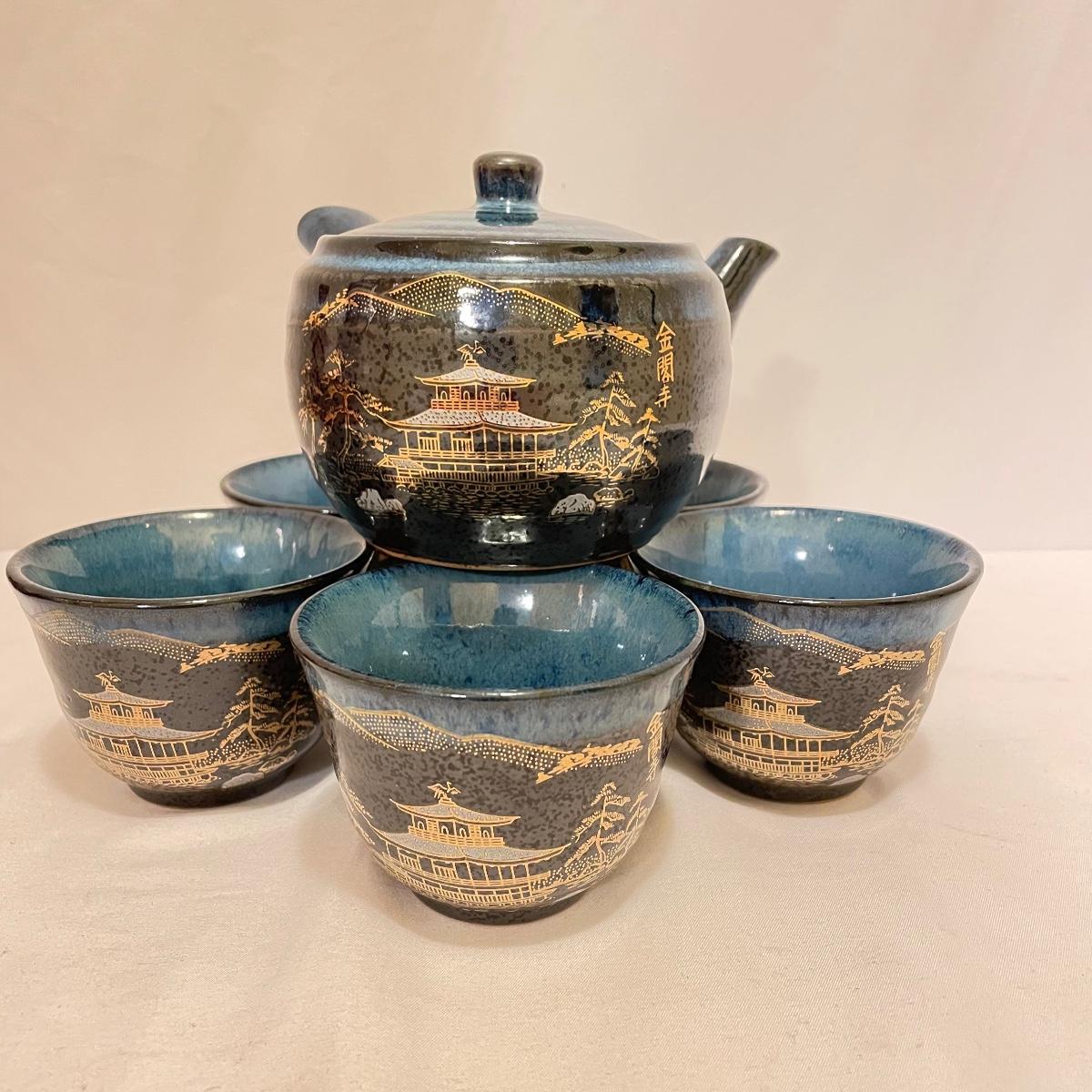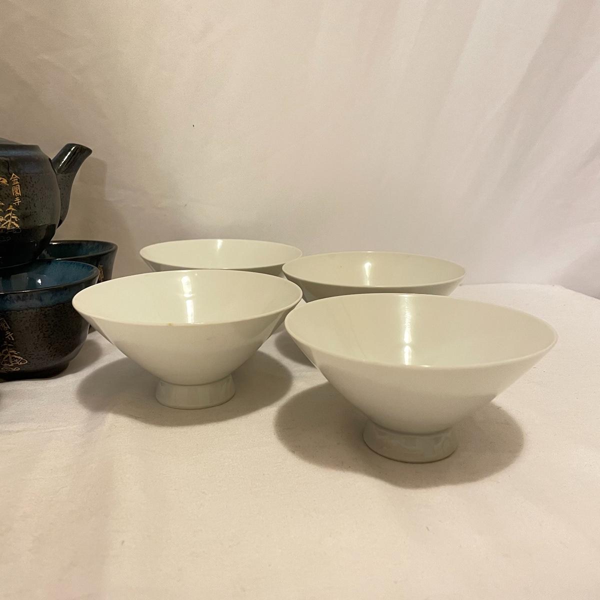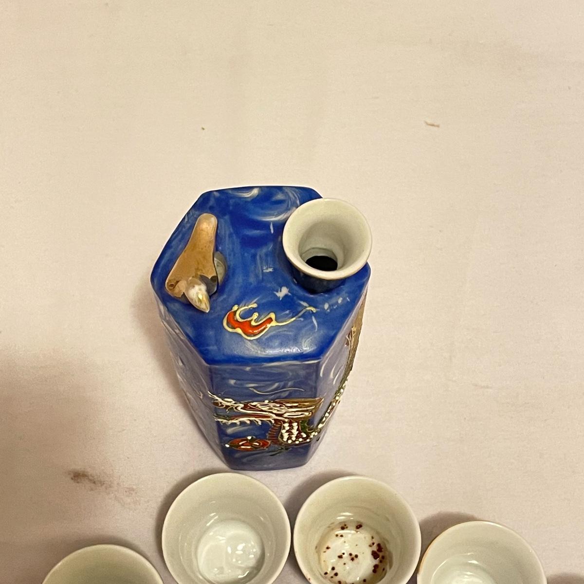 What a beautiful collection of East Asian Pottery and more! Lot features a deep blue teapot with strainer and five matching gold designed cups. Next in images you’ll find a dark maroon tea pot with two globe like cups. A stunning collection of a Sake pitcher and six cups with what appears to be hand painted matching dragons. Lot also includes a sushi roll mat, red marked bamboo chopsticks with two other pairs and three cookbooks. The sake pitcher is about 2.25” x 2.25” x 6”. See images. Shipping available.