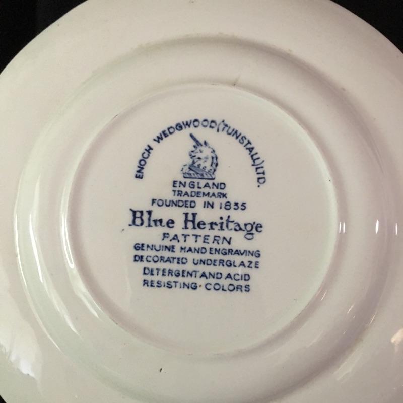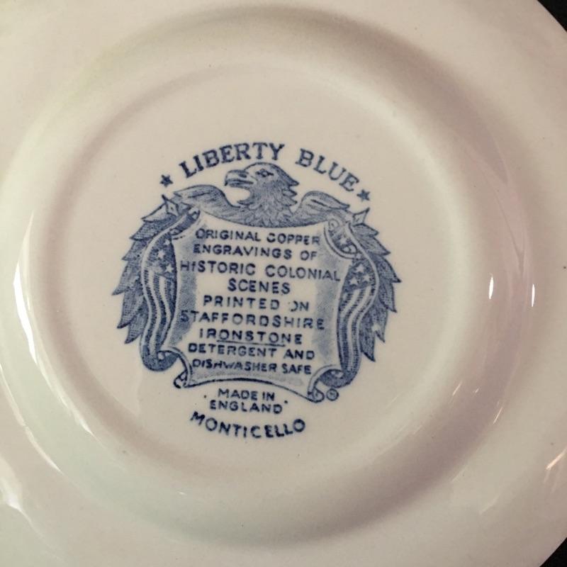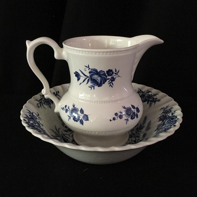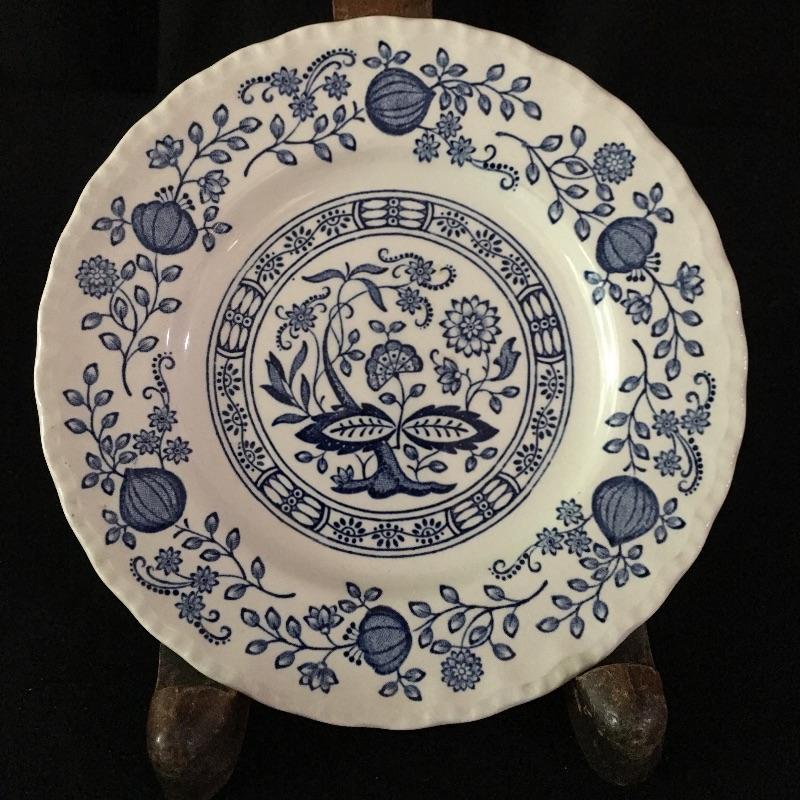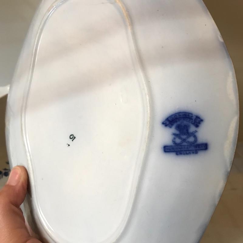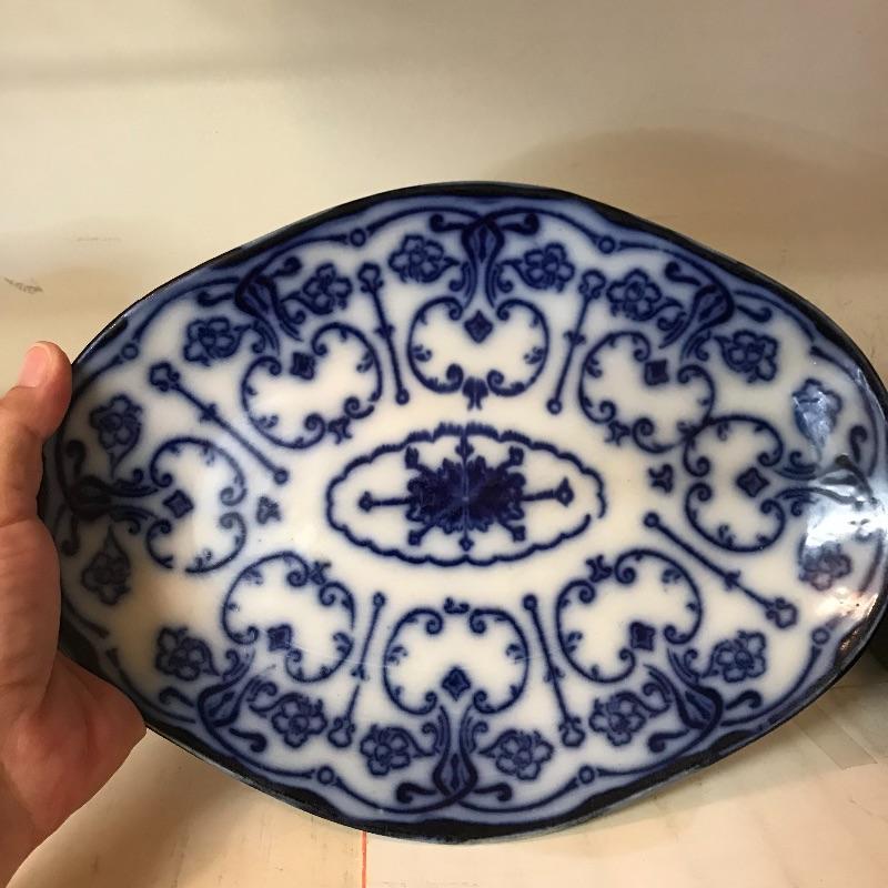 Great assortment of blue and white English China that includes six small plates, platter, bowl, pitcher and small pitcher. See images for more details on each piece. Platter measures 8” x 10.75”.