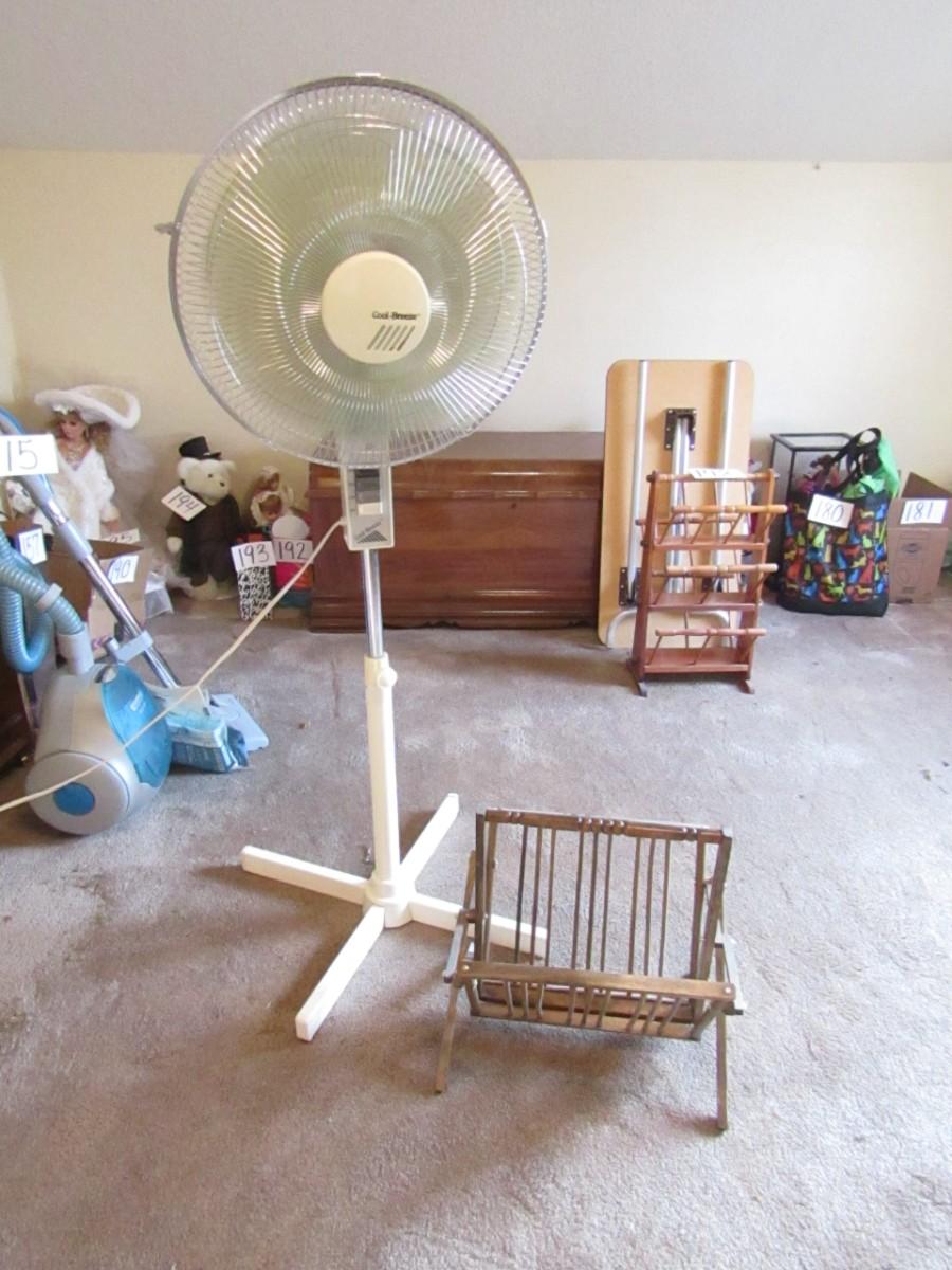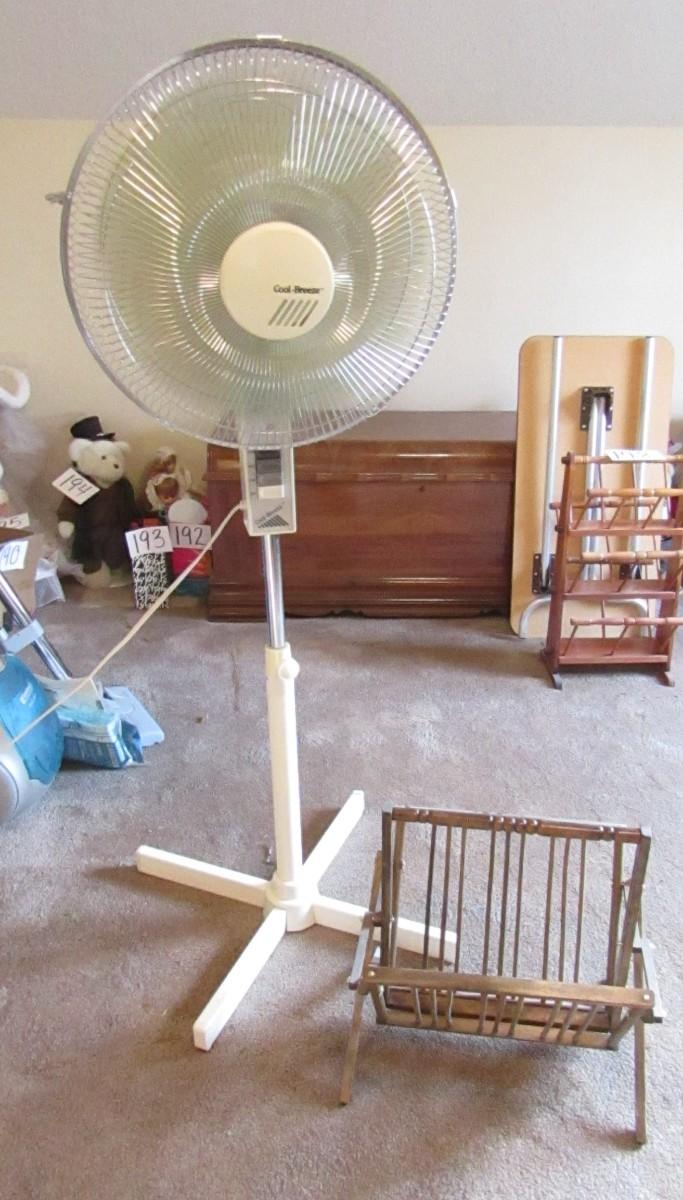 LOT 147 FLOOR FAN AND FOLDING MAGAZINE RACK