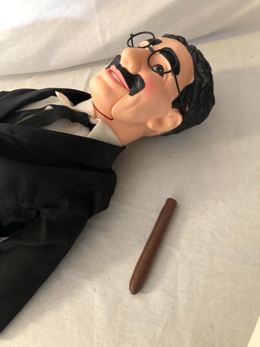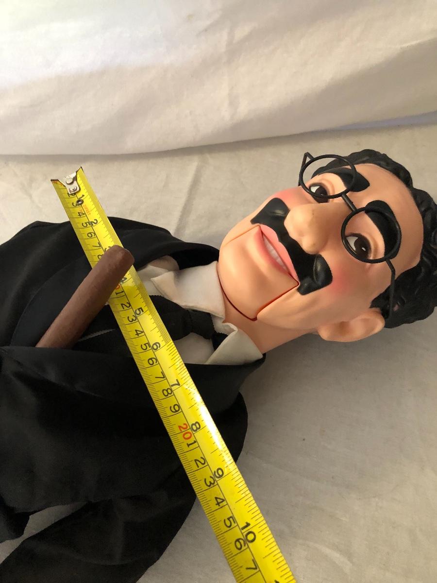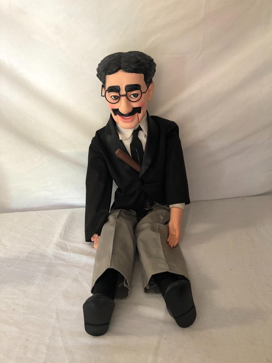 This lot includes one ventriloquist doll complete with cigar and glasses. His mouth moves when one pulls on the string. He is a little over 31” tall. Shipping Available.