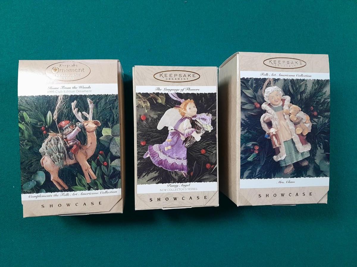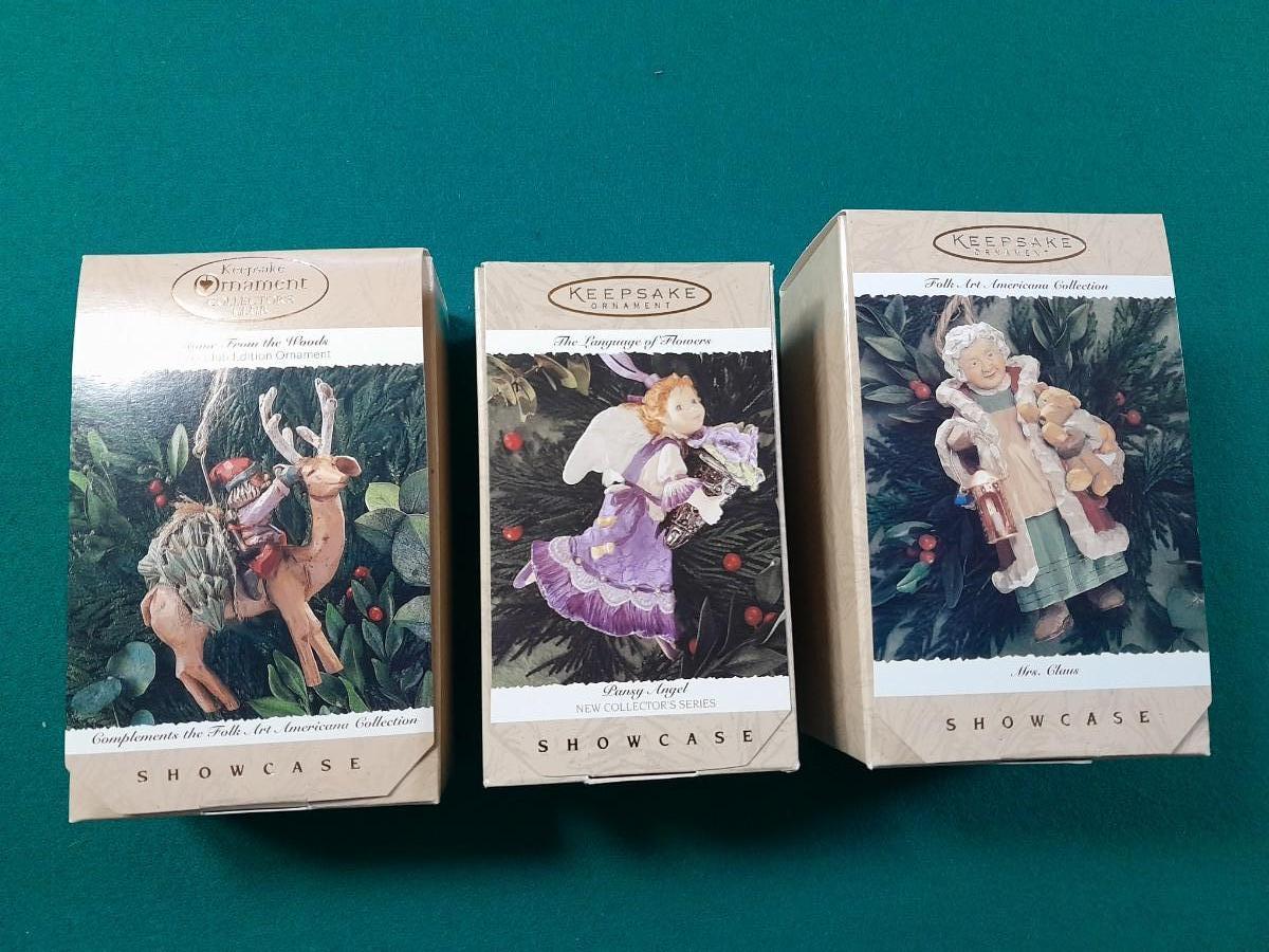 HALLMARK SHOWCASE CHRISTMAS ORNAMENTS, DEER, ANGEL & MRS. CLAUS
