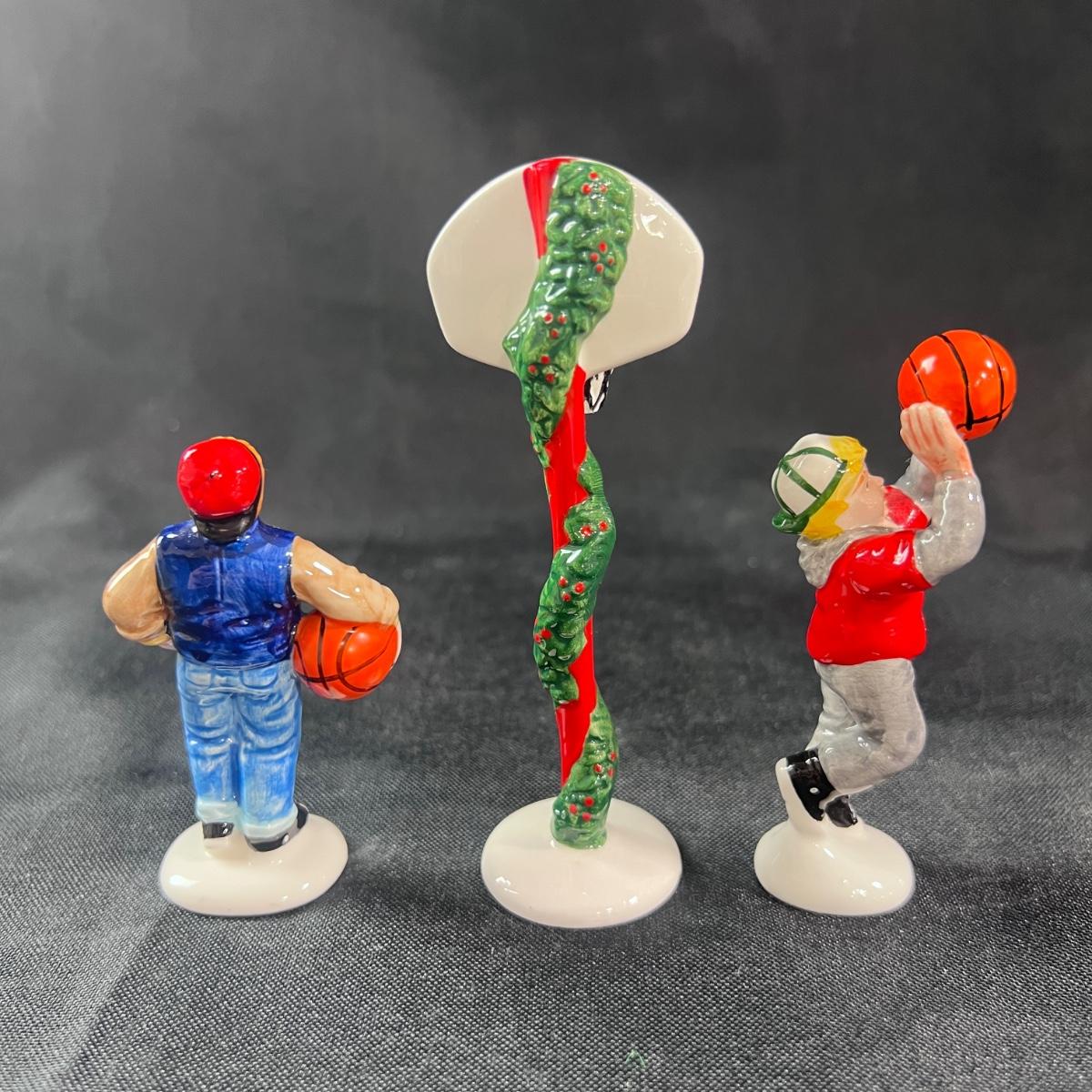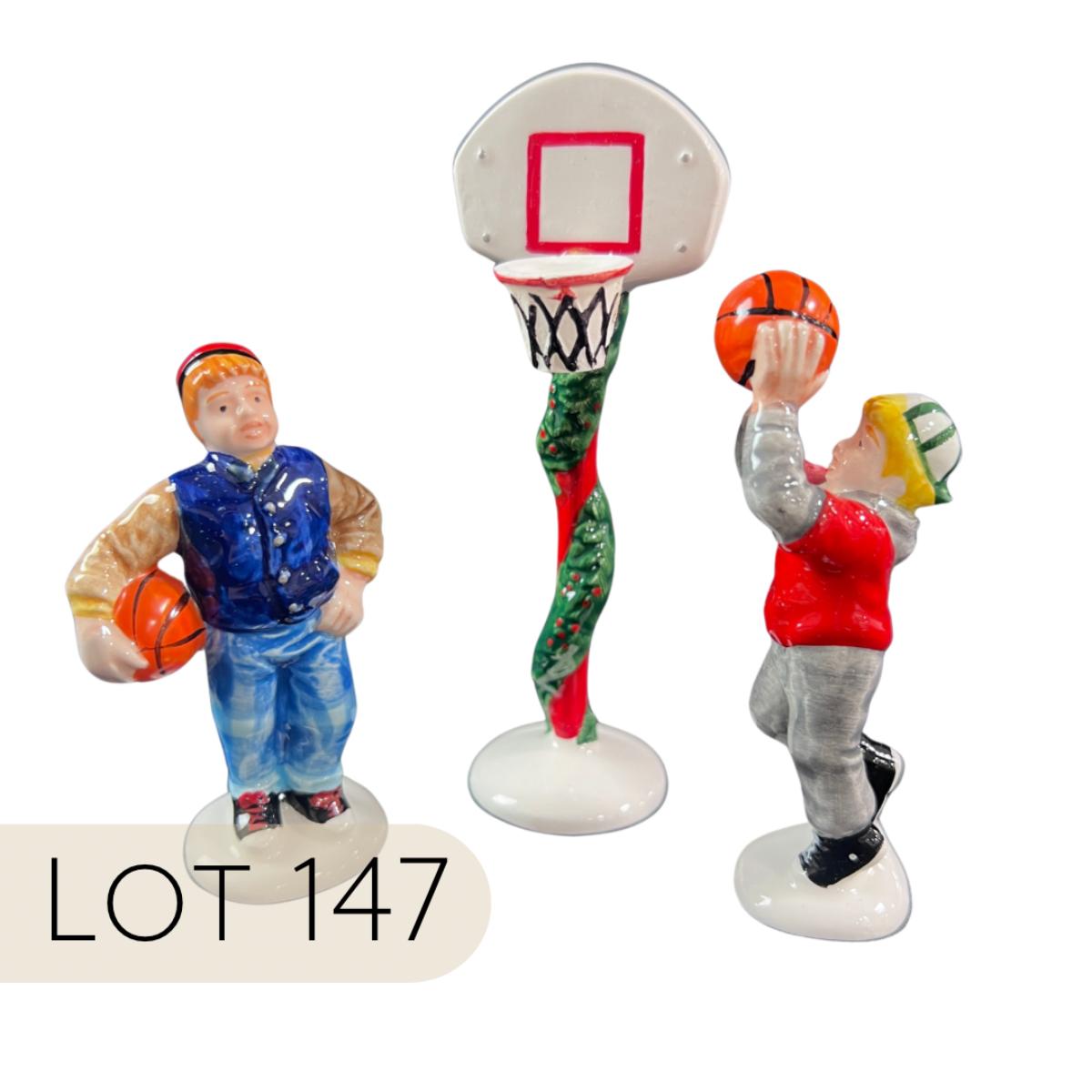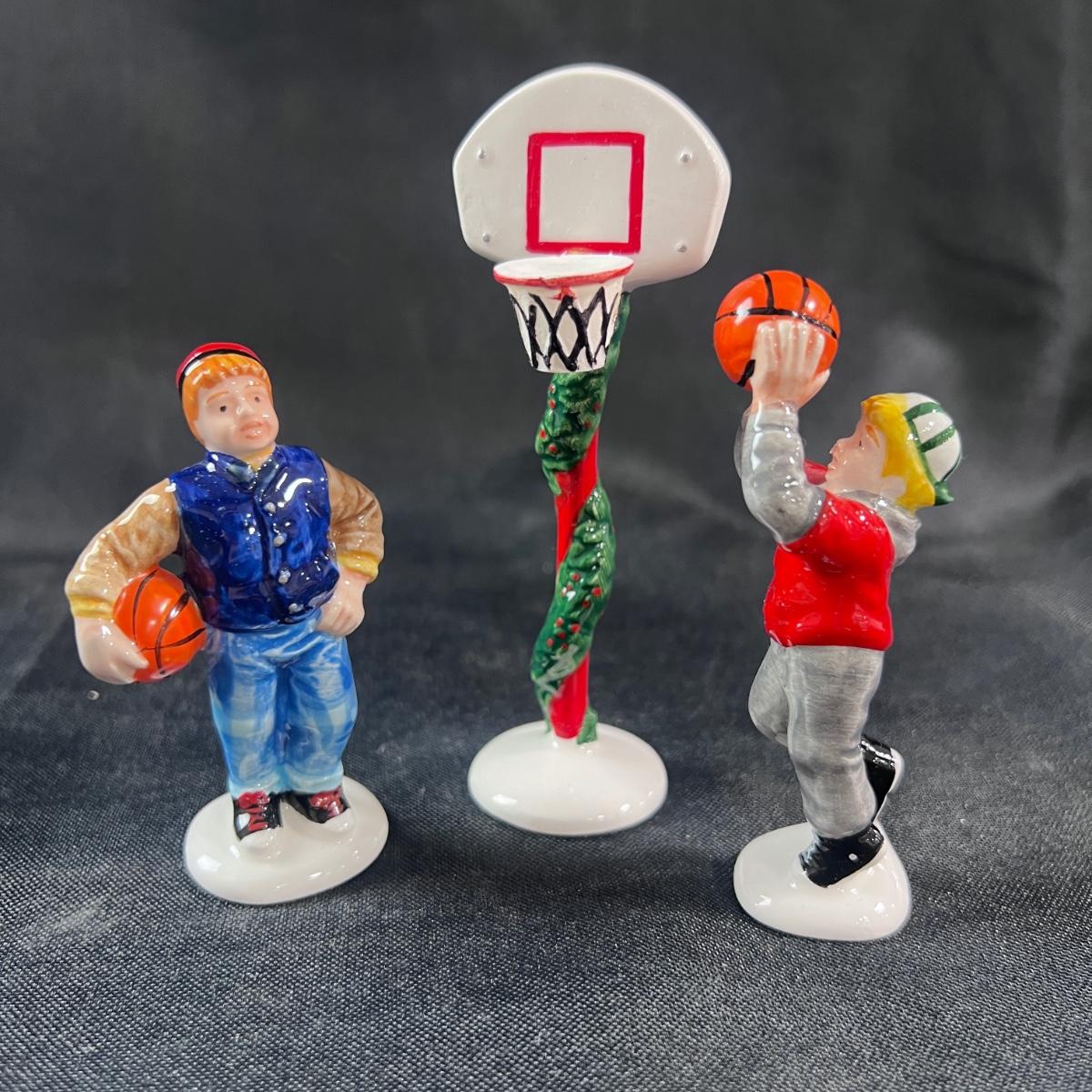 Department 56 Holiday Hoops complete set of 3 figures. I was the first to take these out of the box. Also, the name of this set sounds like a movie where I’d fall for the floppy-haired lead and tape pictures of him all over my locker door. Please see photos for details and condition. ::: Shipping is available on this lot. If you require shipping you must let us know at the close of the auction. We will coordinate with you after the item has been won. Shipping fees will include insurance up to or exceeding the value of all items being mailed. If you have any questions regarding this lot please contact the auctioneer either via this website, by direct email or by phone. PICK UP TIMES and other important information can be found in the TERMS and DESCRIPTION of the auction. Please take a look for pertinent information. Thanks! Any condition statement is given as a courtesy to a client, is an opinion, and should not be treated as a statement of fact. Reference to condition written, oral or within a condition report shall not be regarded as a full account of condition and may not include all defects, alterations, or restorations. Absence of a condition report does not imply a lot is flawless or lacking imperfections or damage. Katherine’s Auction & Appraisal Service shall have no responsibility for any error or omission. Returns shall not be accepted on the basis of condition.