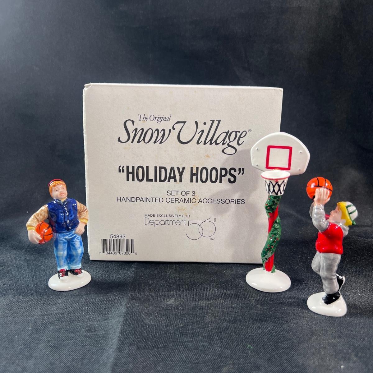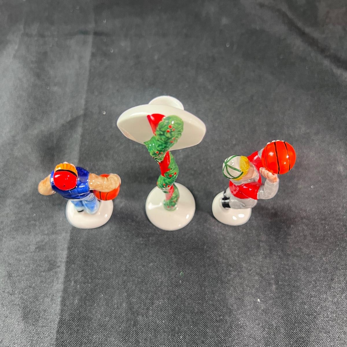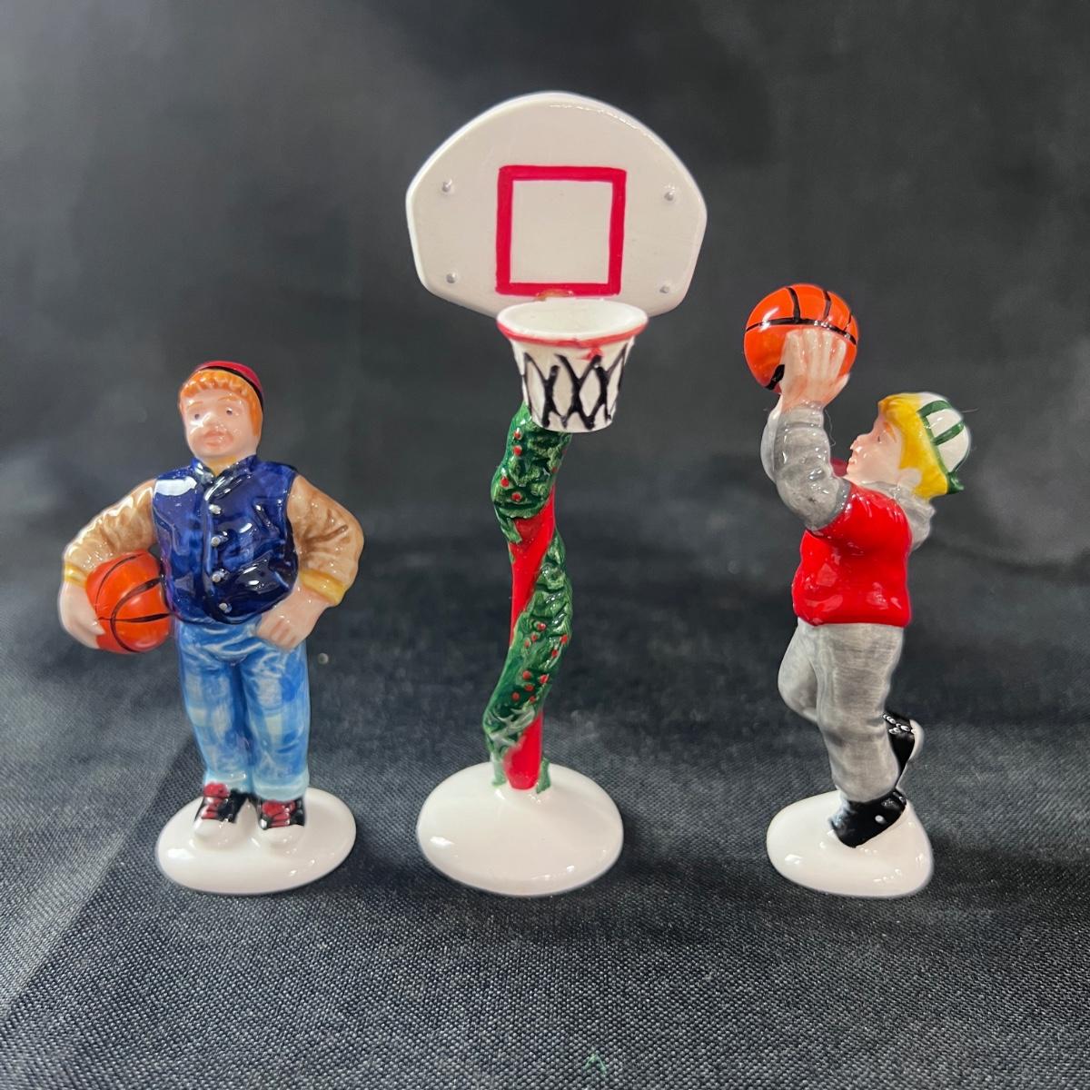 Department 56 Holiday Hoops complete set of 3 figures. I was the first to take these out of the box. Also, the name of this set sounds like a movie where I’d fall for the floppy-haired lead and tape pictures of him all over my locker door. Please see photos for details and condition. ::: Shipping is available on this lot. If you require shipping you must let us know at the close of the auction. We will coordinate with you after the item has been won. Shipping fees will include insurance up to or exceeding the value of all items being mailed. If you have any questions regarding this lot please contact the auctioneer either via this website, by direct email or by phone. PICK UP TIMES and other important information can be found in the TERMS and DESCRIPTION of the auction. Please take a look for pertinent information. Thanks! Any condition statement is given as a courtesy to a client, is an opinion, and should not be treated as a statement of fact. Reference to condition written, oral or within a condition report shall not be regarded as a full account of condition and may not include all defects, alterations, or restorations. Absence of a condition report does not imply a lot is flawless or lacking imperfections or damage. Katherine’s Auction & Appraisal Service shall have no responsibility for any error or omission. Returns shall not be accepted on the basis of condition.