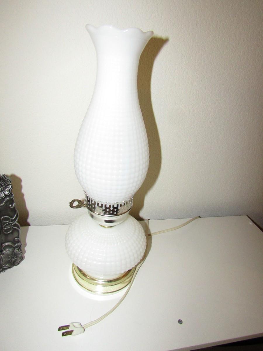 HOBNAIL MILK GLASS ELECTRIC TABLE LAMP