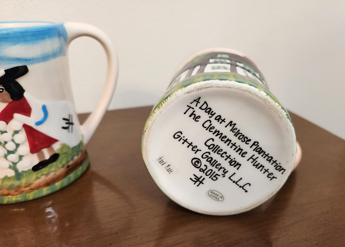 Lot #147 Pair of Clementine Hunter Mugs - "Cotton Picking" and "A Day at Melrose Plantation"