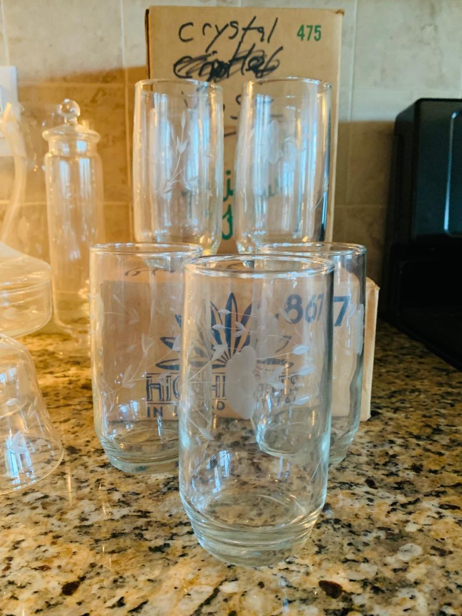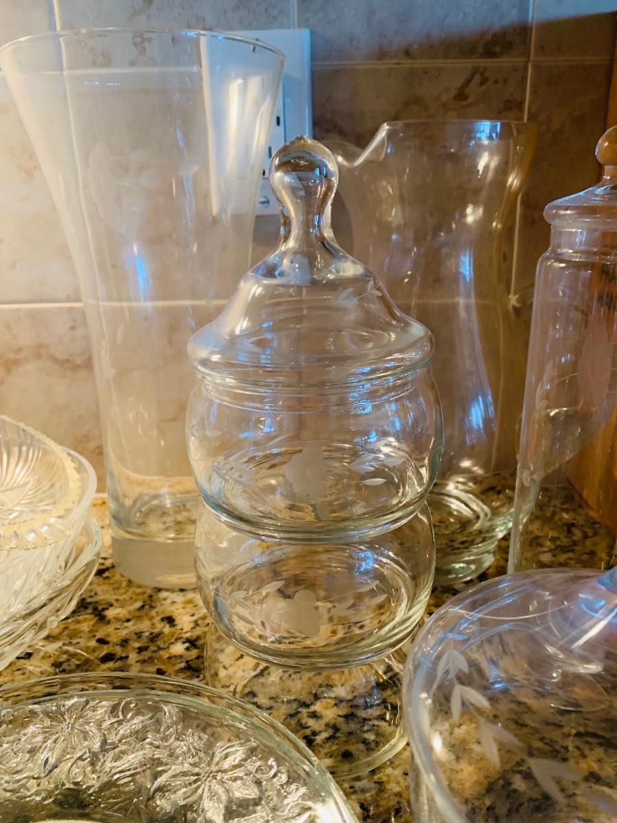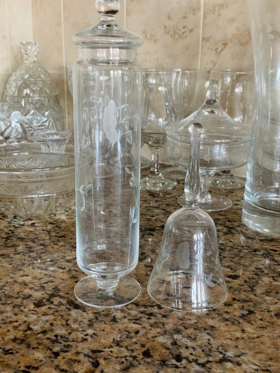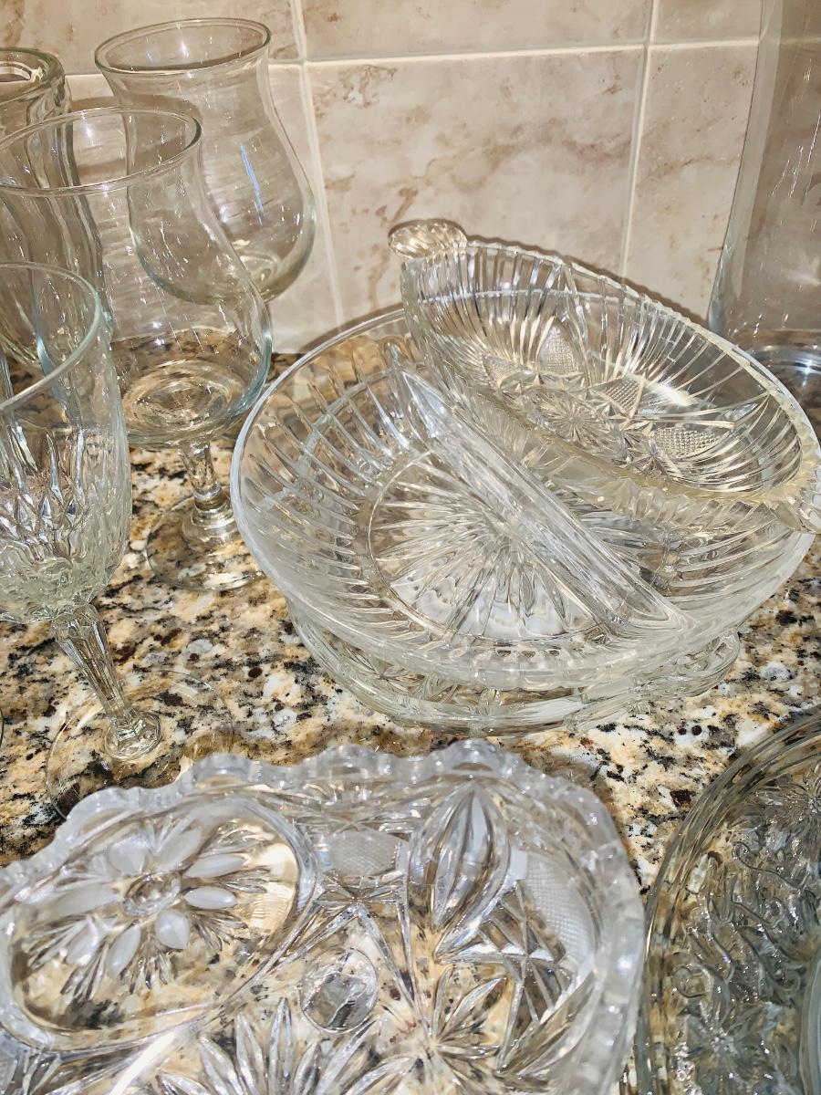 Beautiful large Princess House vase, beverage glasses, cover candy dishes and much more in this large collection of crystal and glass. Collection has a Princess House bell which is missing it clapper.