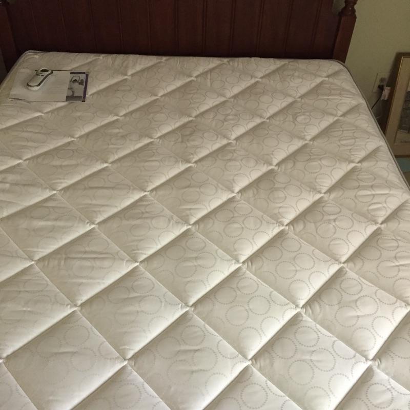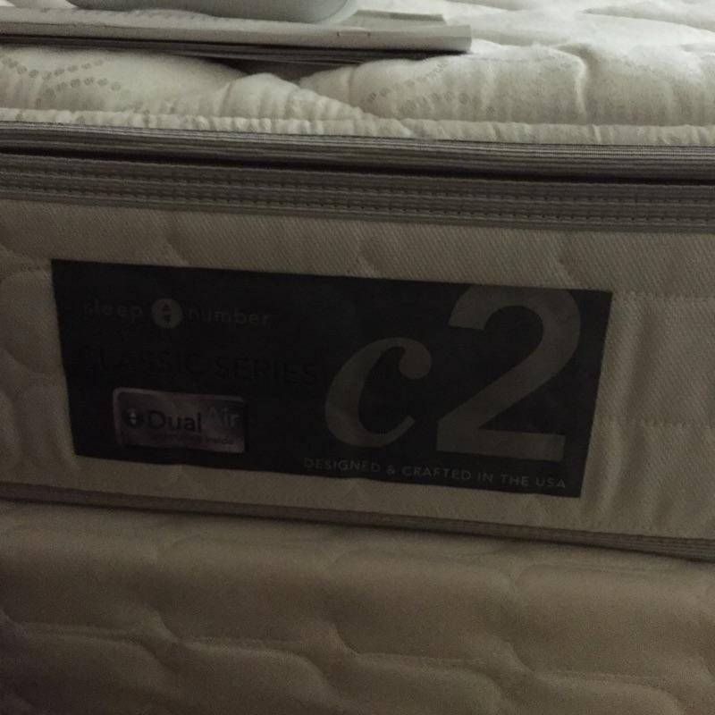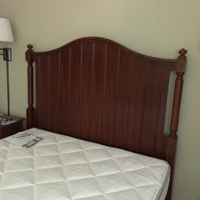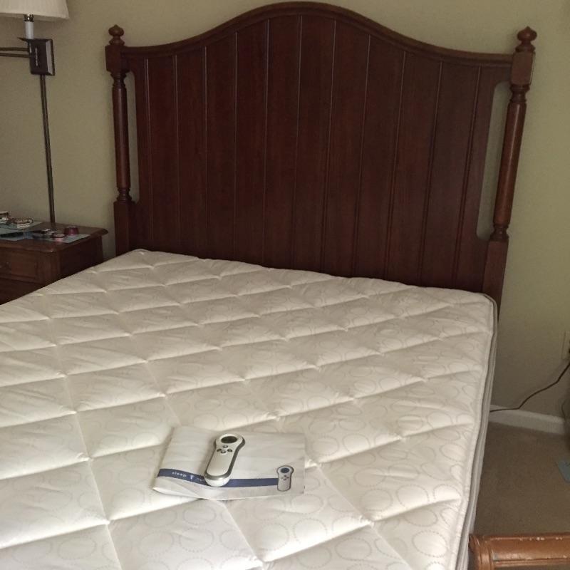 The headboard is a cherry red brown color and measures 63” x 40”. Headboard comes with a like new Sleep Number mattress and frame if buyer wants. Assembly directions and remote control included. This is on the second floor so bring help if you plan to take the bed.