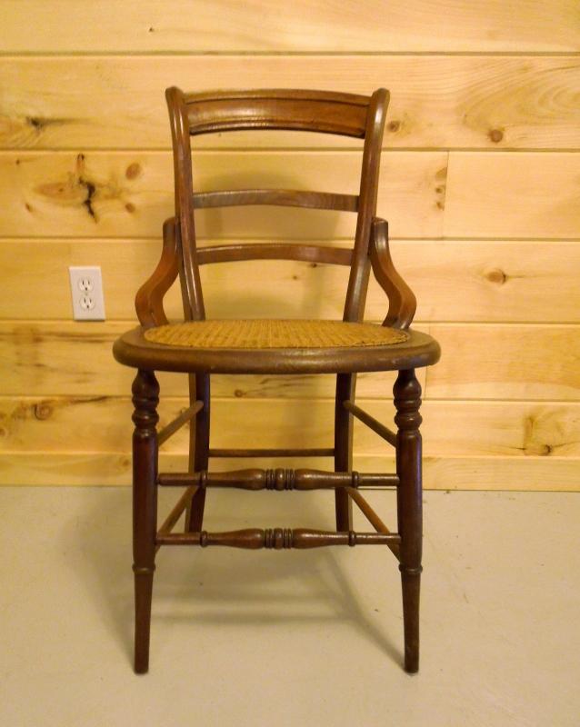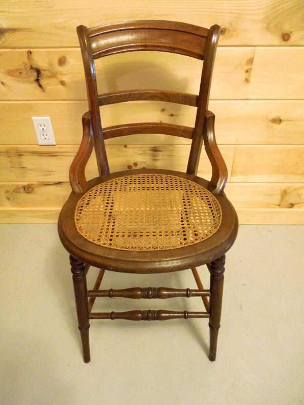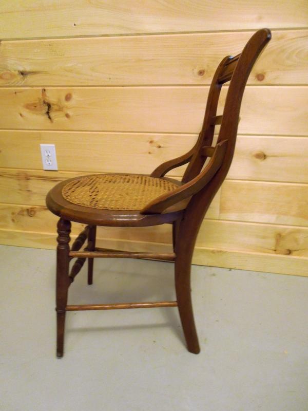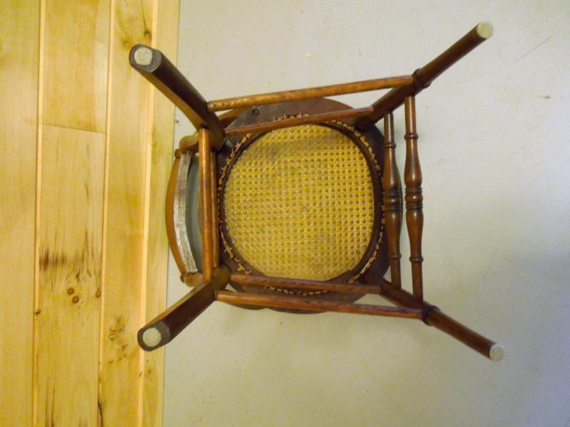 Unique design. In excellent condition. Tightly woven can seat. Sturdy mahogany finish construction. One small knick on back.