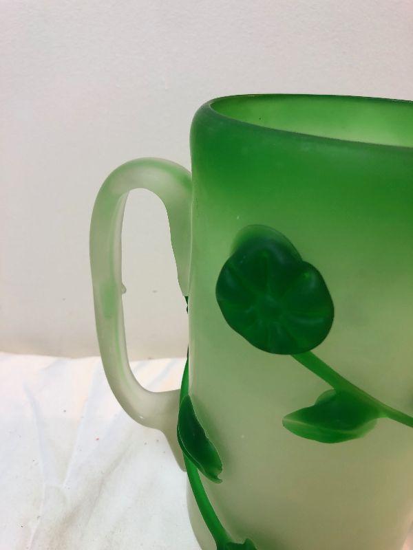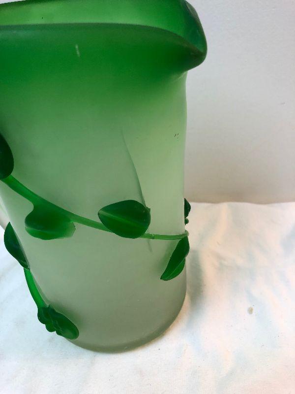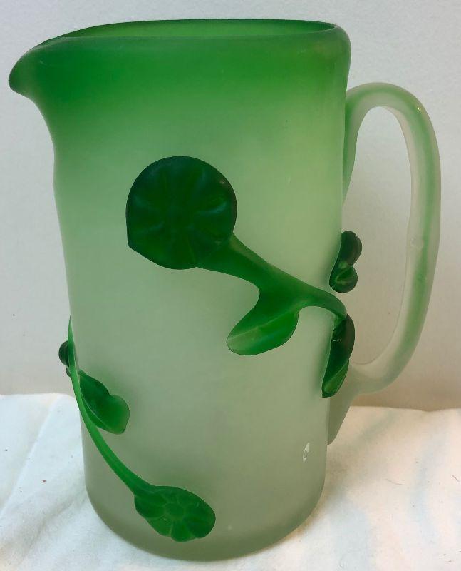 Lot #147 Satin Green Glass Hand Blown Pitcher