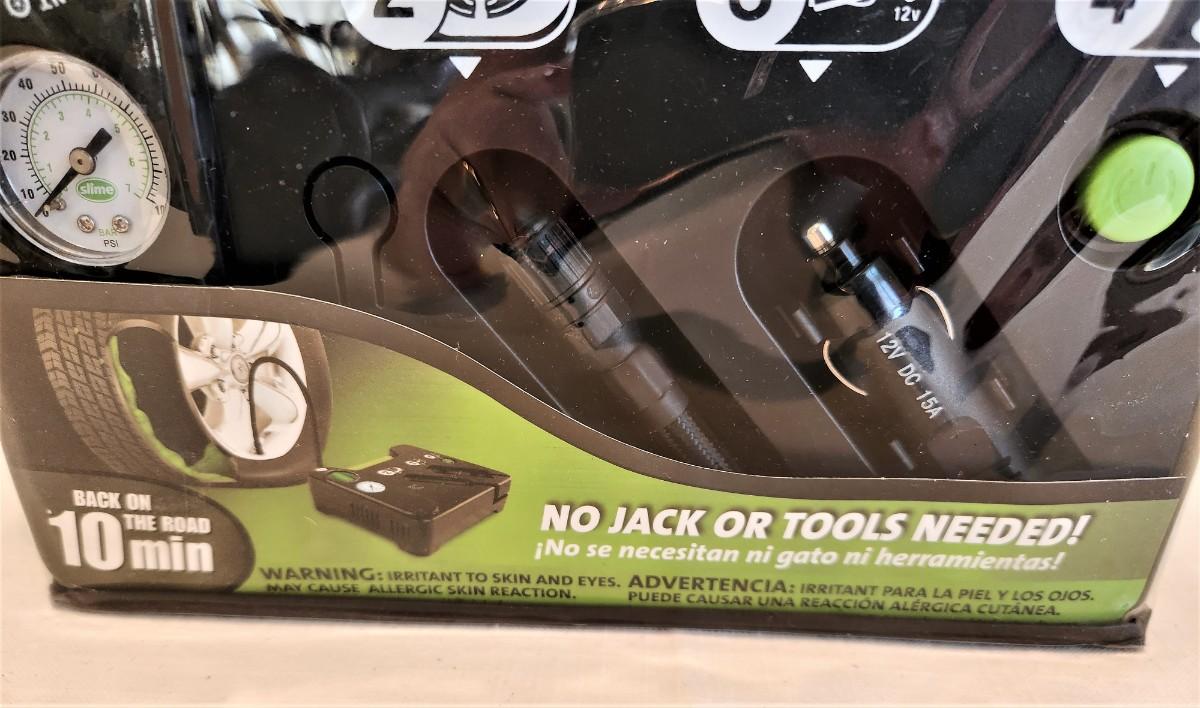 New in package - SLIME flat tire repair kit - will have you back on the road in 10 minutes with 4 simple, no tools required.