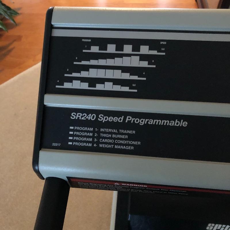 Get in shape for the spring with this Spirit SR240 treadmill with adjustable incline and speed programmable. Treadmill worked when tested. Treadmill measures 26.5” x 67.5” x 52”. Bring help item is substantial and does not fold for storage.