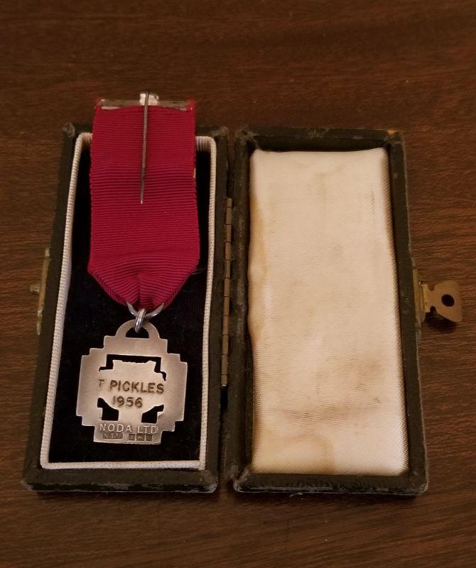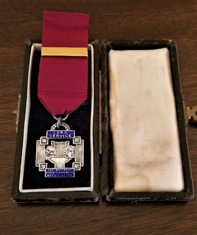 Dated 1956 - Sterling Silver medal for service to the National Operatic & Dramatic Arts Association (British). Original box.