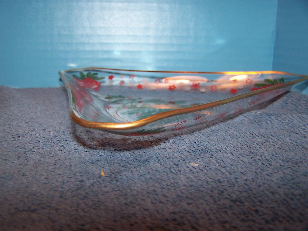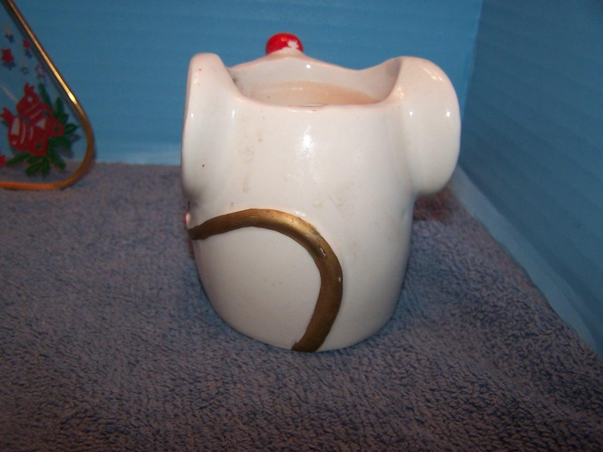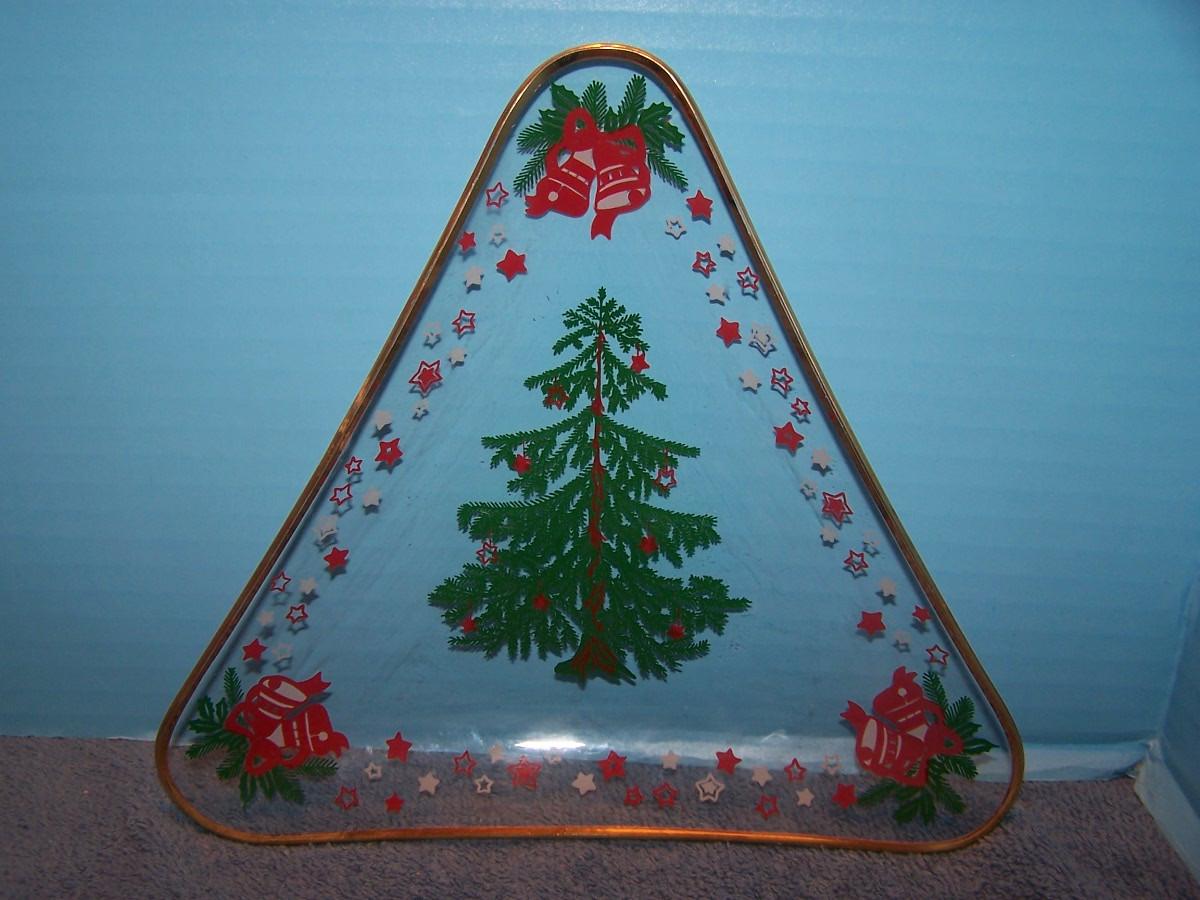 SOME ADORABLE MID CENTURY CHRISTMAS DECORATIONS!!! I THINK THE CERAMIC MOUSE CANDLE HOLDER WAS MADE BY HOLT HOWARD...THE GLASS DISH IS 7 3/4'' ACROSS. LIGHT WEAR...