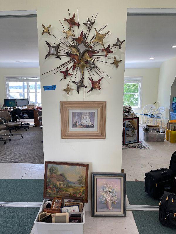 Assortment of Wall Art Including Oil, Watercolor, Metal and Frames.