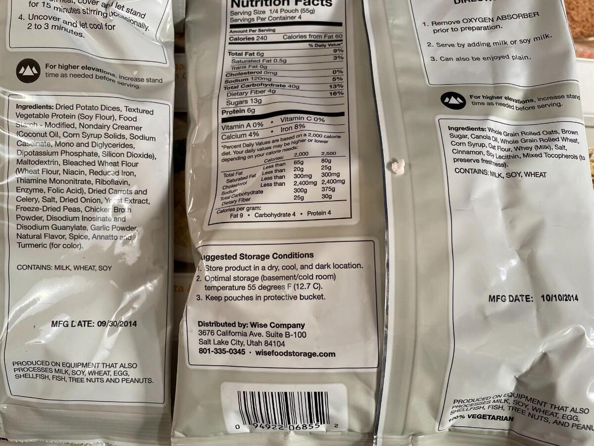 Lot 147 Wise Company Emergency Food Supply - Food Prep 1 Month