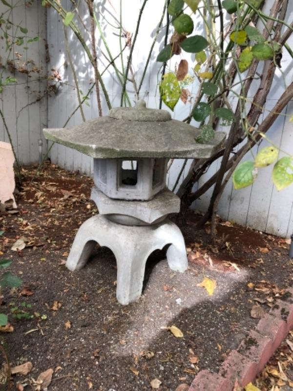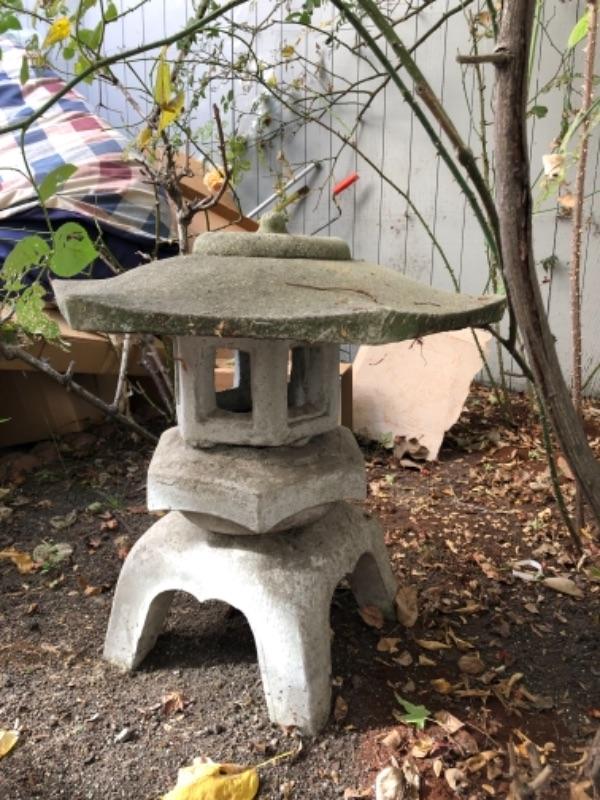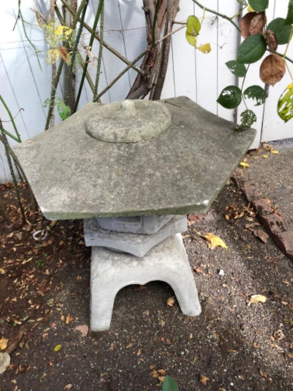 Lot 147U. Hexagonal cement garden pagoda, 24” tall and 24” in diameter--$85