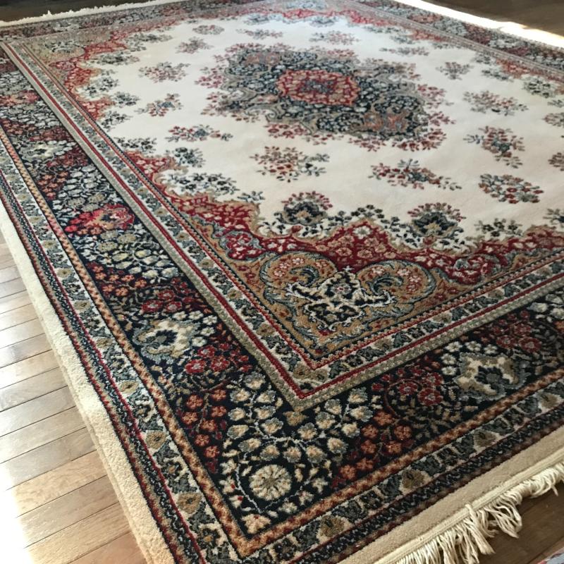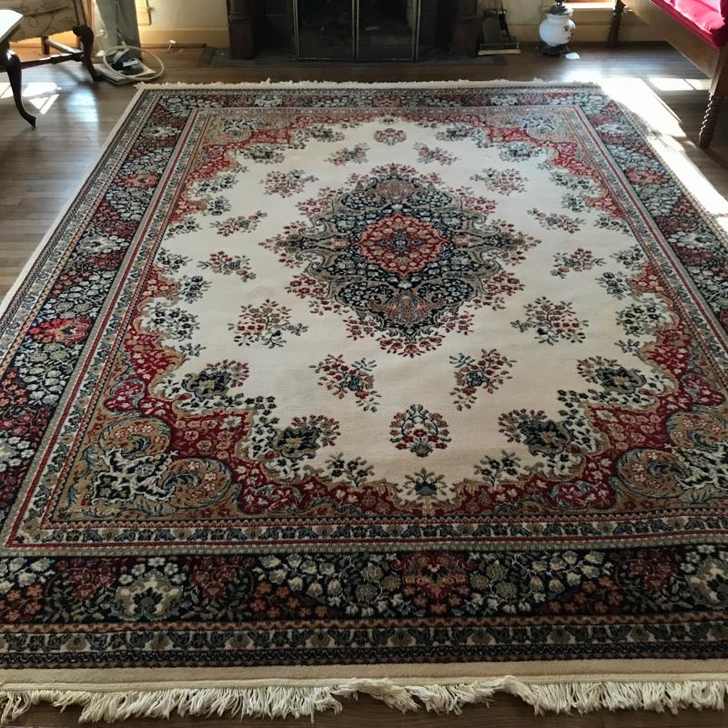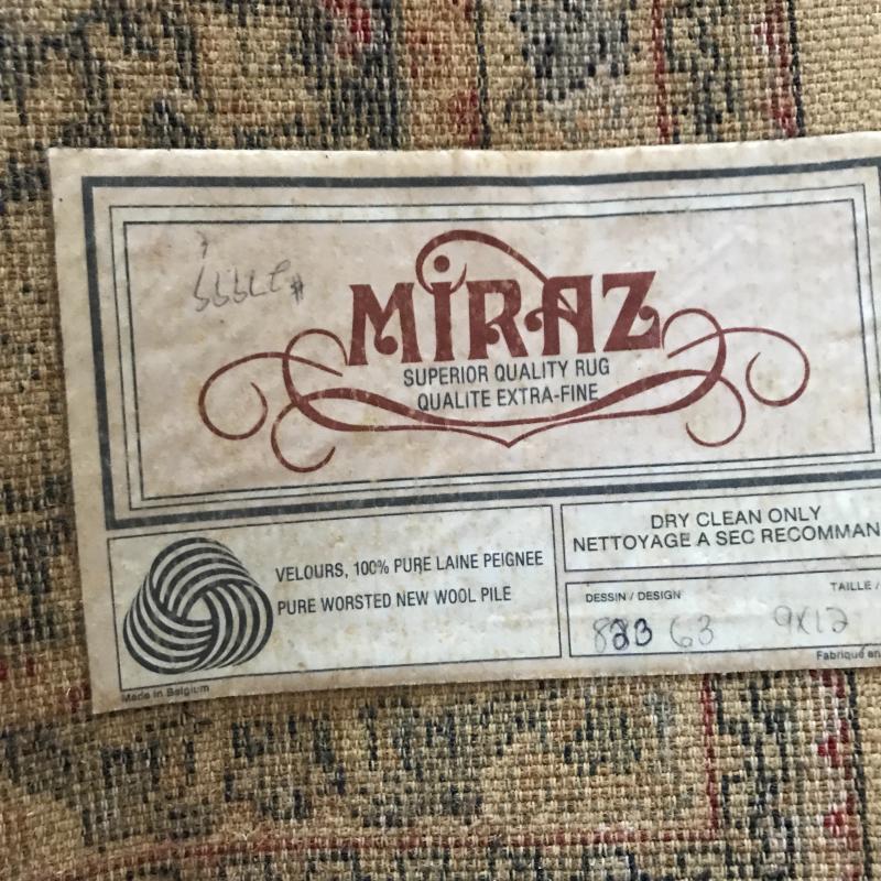 Large beautiful rug by Miraz. 100% wool. Size 9' x12'. Great condition. Comes with rug pad. No shipping. Local pick up only in Flat Rock, NC.